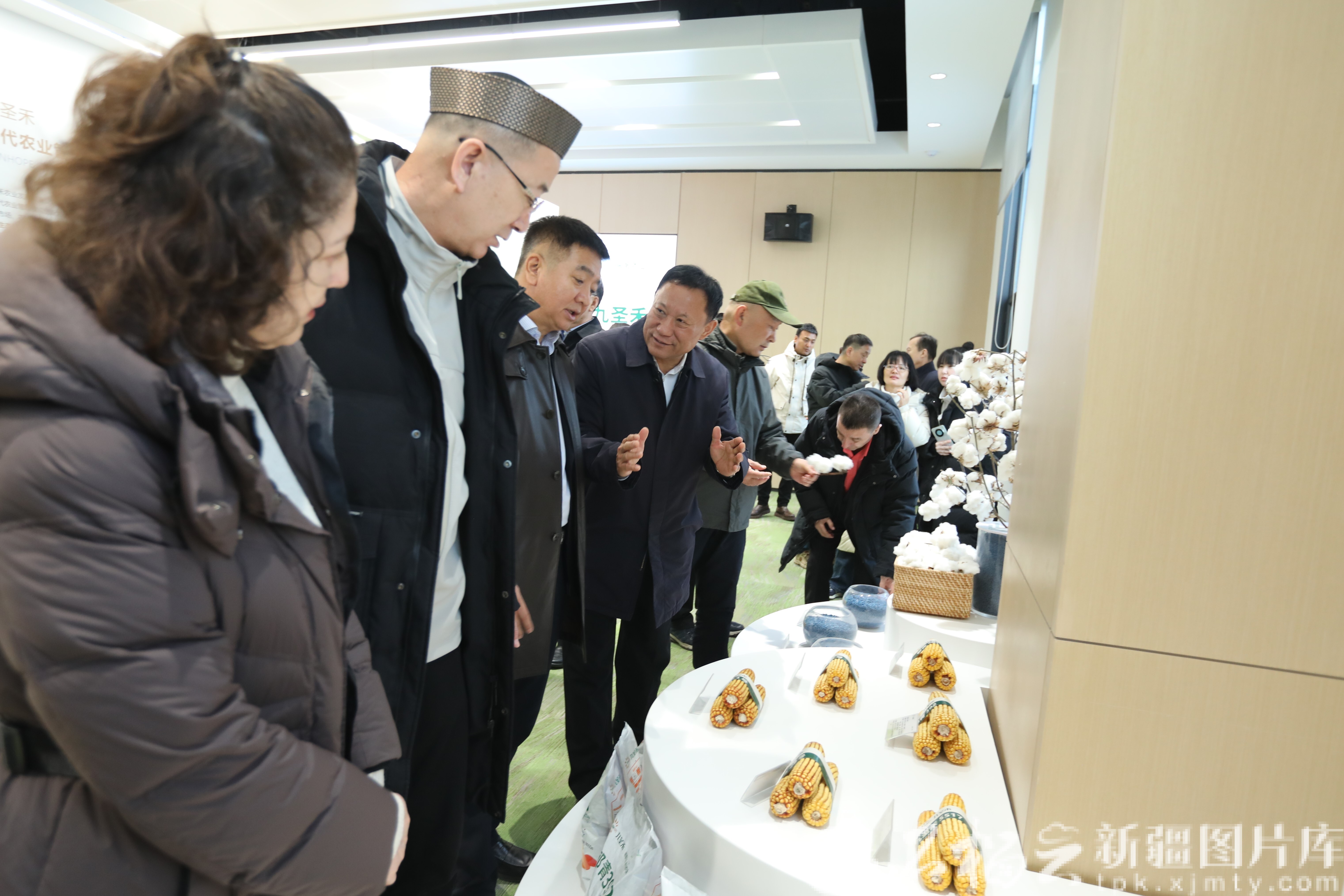 在九圣禾种子科普展厅,作为标本展示的小麦、玉米、棉花等因此格外吸引参观者的目光。得知九圣禾D1508小麦连续两年单产突破800公斤,委员们发出由衷的赞叹。王威委员轻抚饱满的麦穗标本说:“新疆粮食产量成绩亮眼,九圣禾的自主创新功不可没。”