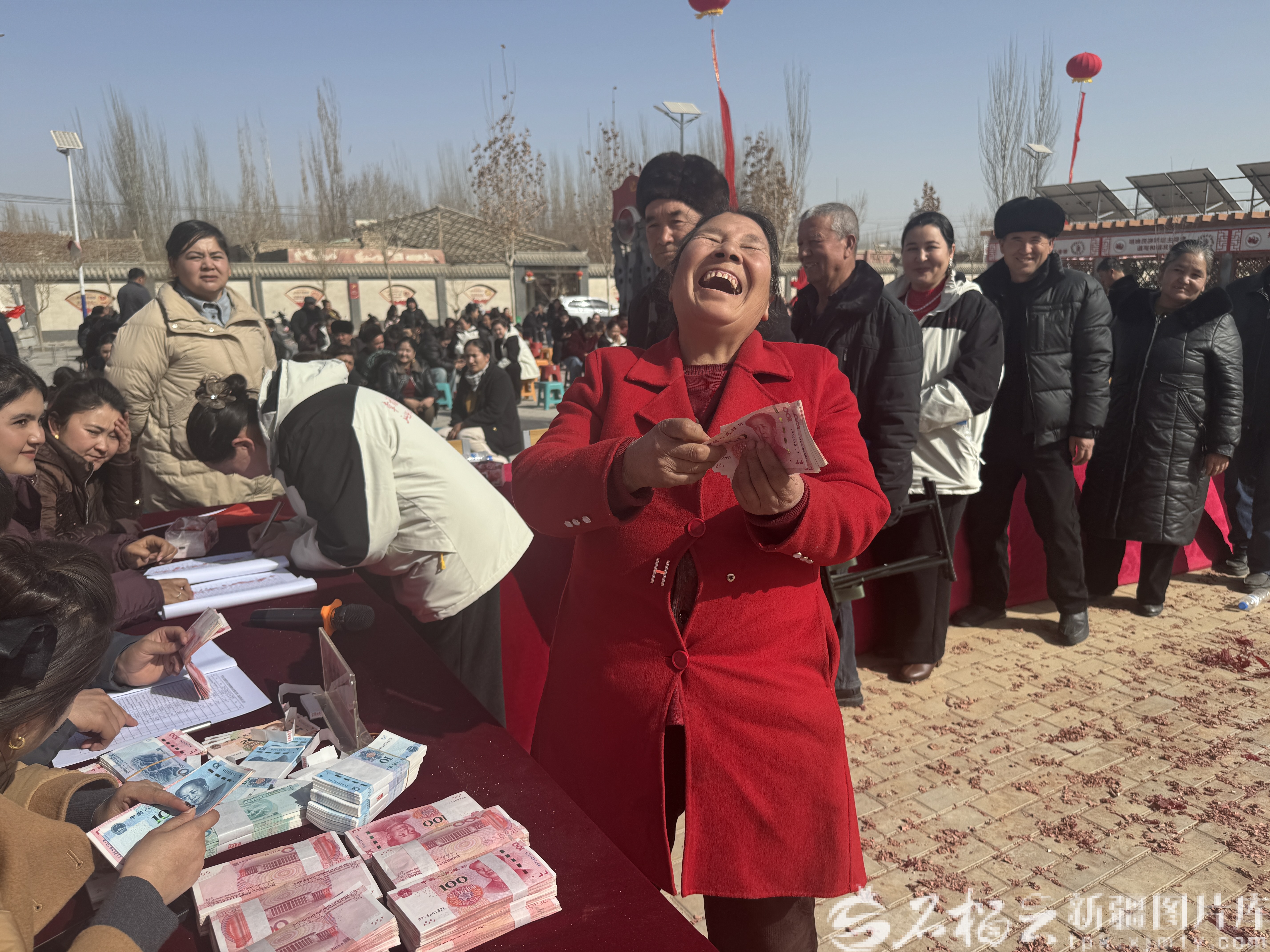 中国铁路乌鲁木齐局集团有限公司驻罕艾日克村第一书记安尼瓦尔·苏甫阿吉走到人群前,声音洪亮:“乡亲们,去年咱们村挣了钱,今天给大家分红。”