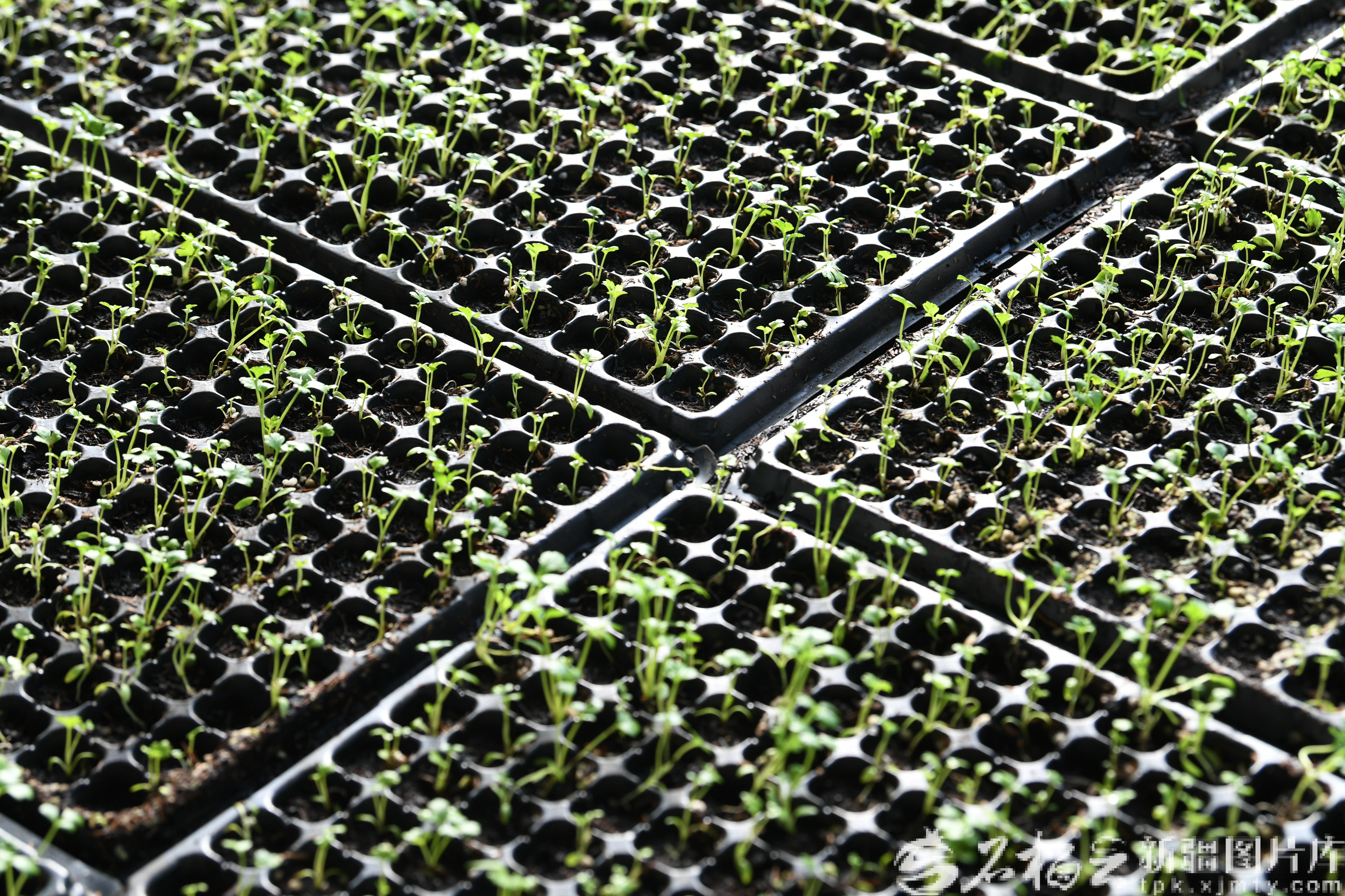 2月12日,在乌鲁木齐高新区(新市区)青格达湖乡新联村的清洁能源智能温室里,幼苗茁壮成长。