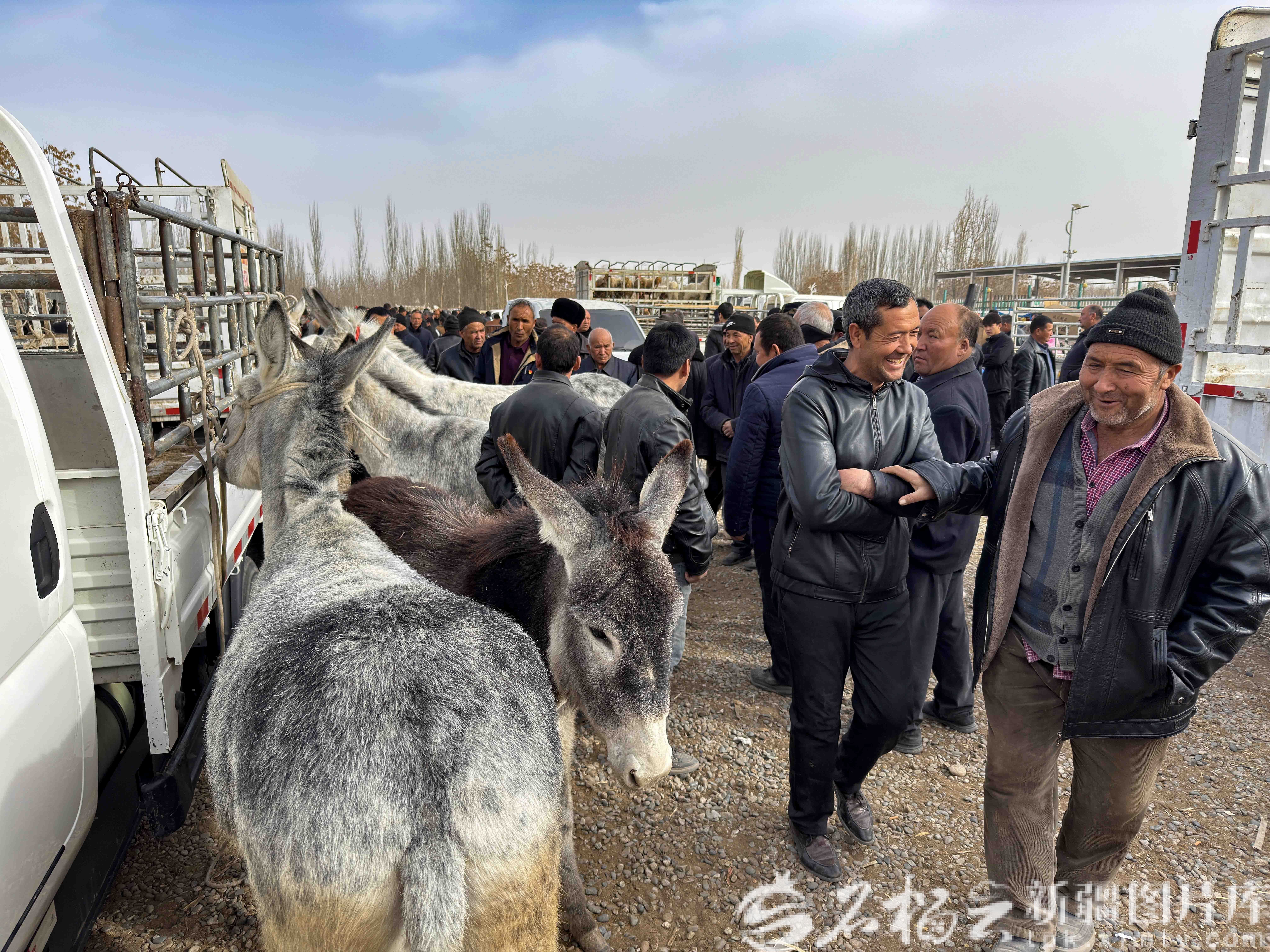 2月11日,农民在皮山县木吉镇巴扎活畜区进行交易。
