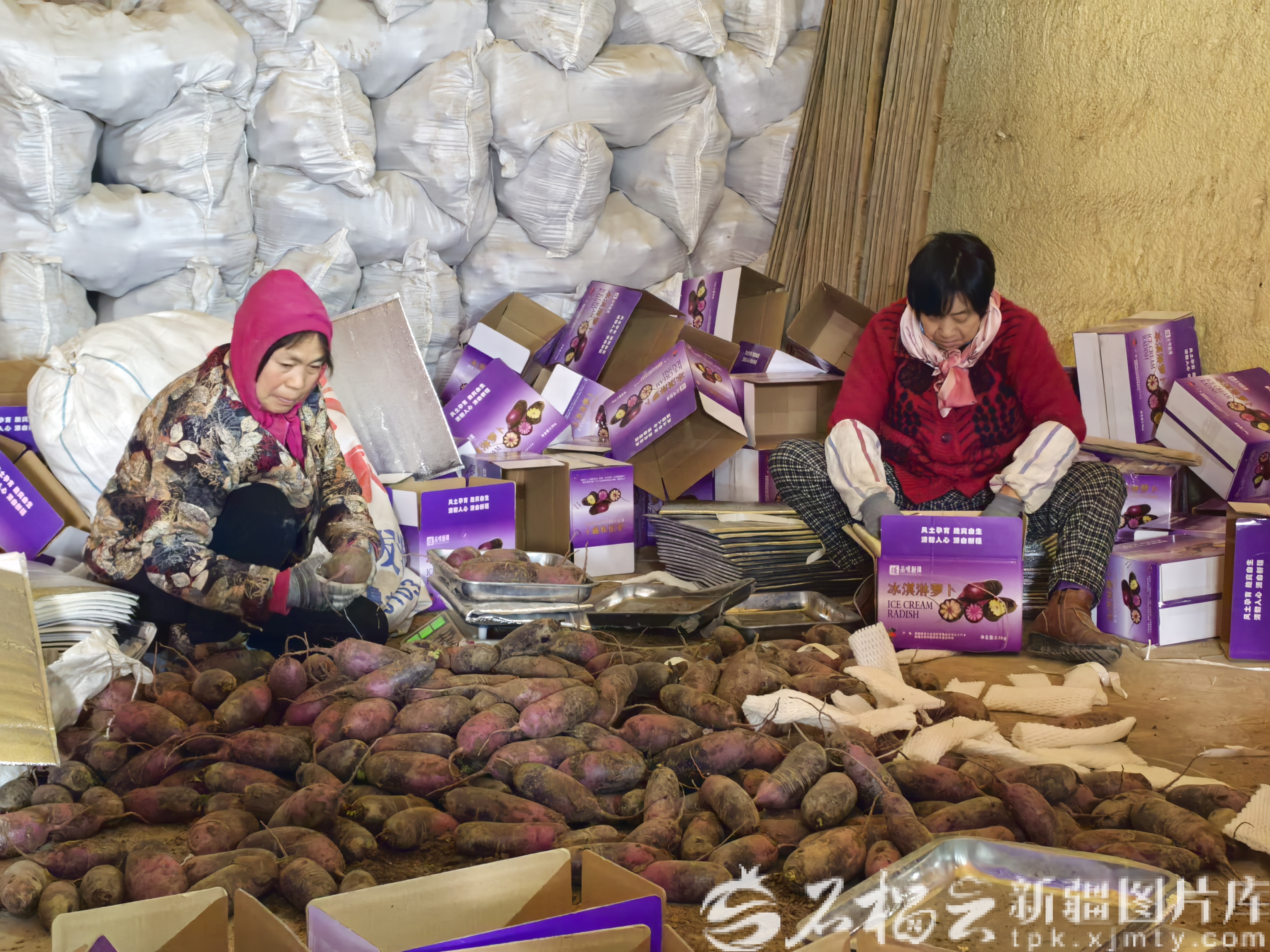 在合作社的库房里,工人们正在加紧打包冰淇淋萝卜。石榴云/新疆日报记者 马蓓摄