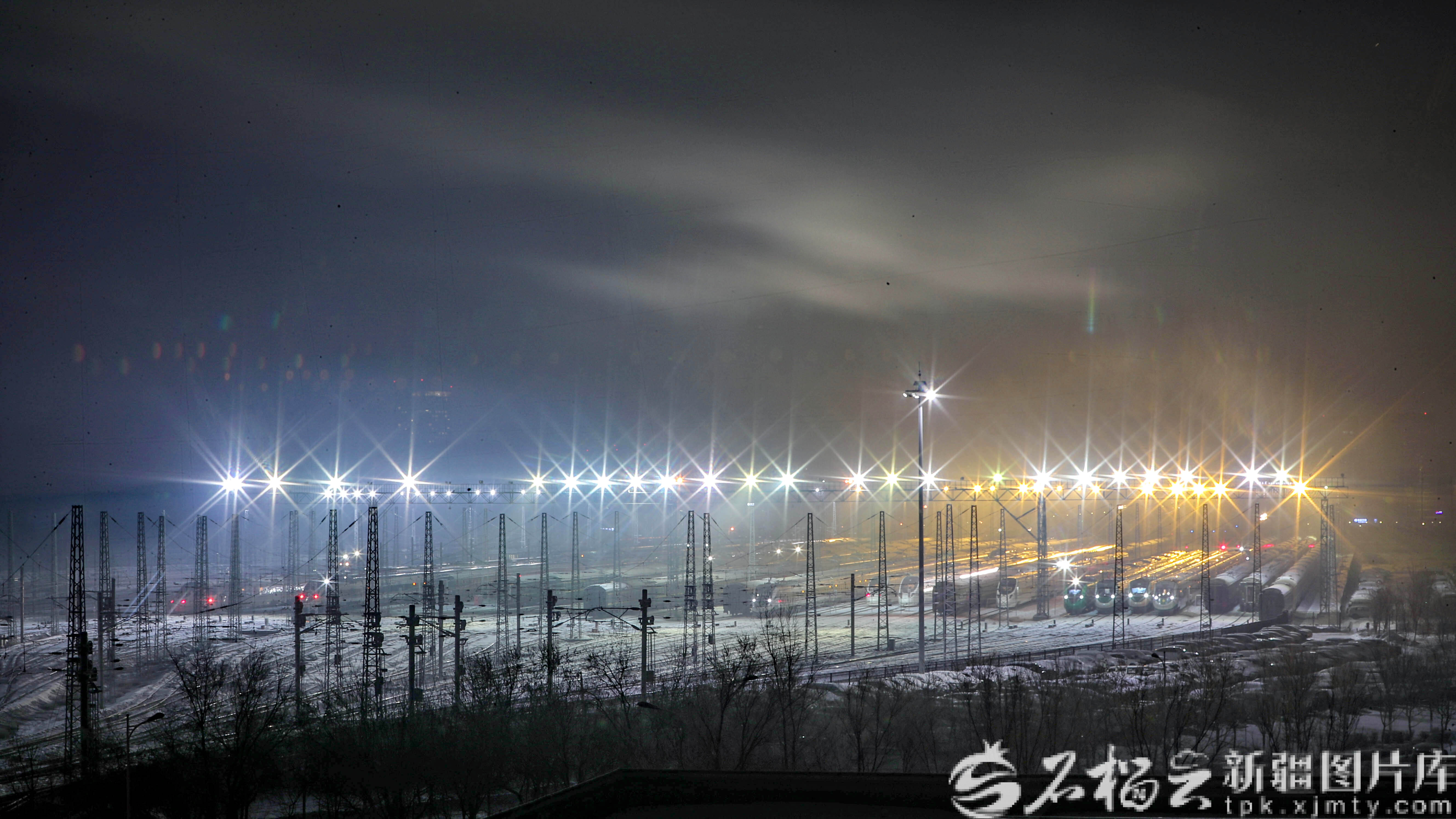 2月5日,中国铁路乌鲁木齐局集团有限公司乌鲁木齐车辆段动车片区存车场灯火通明一列列动车组列车整装待发。
