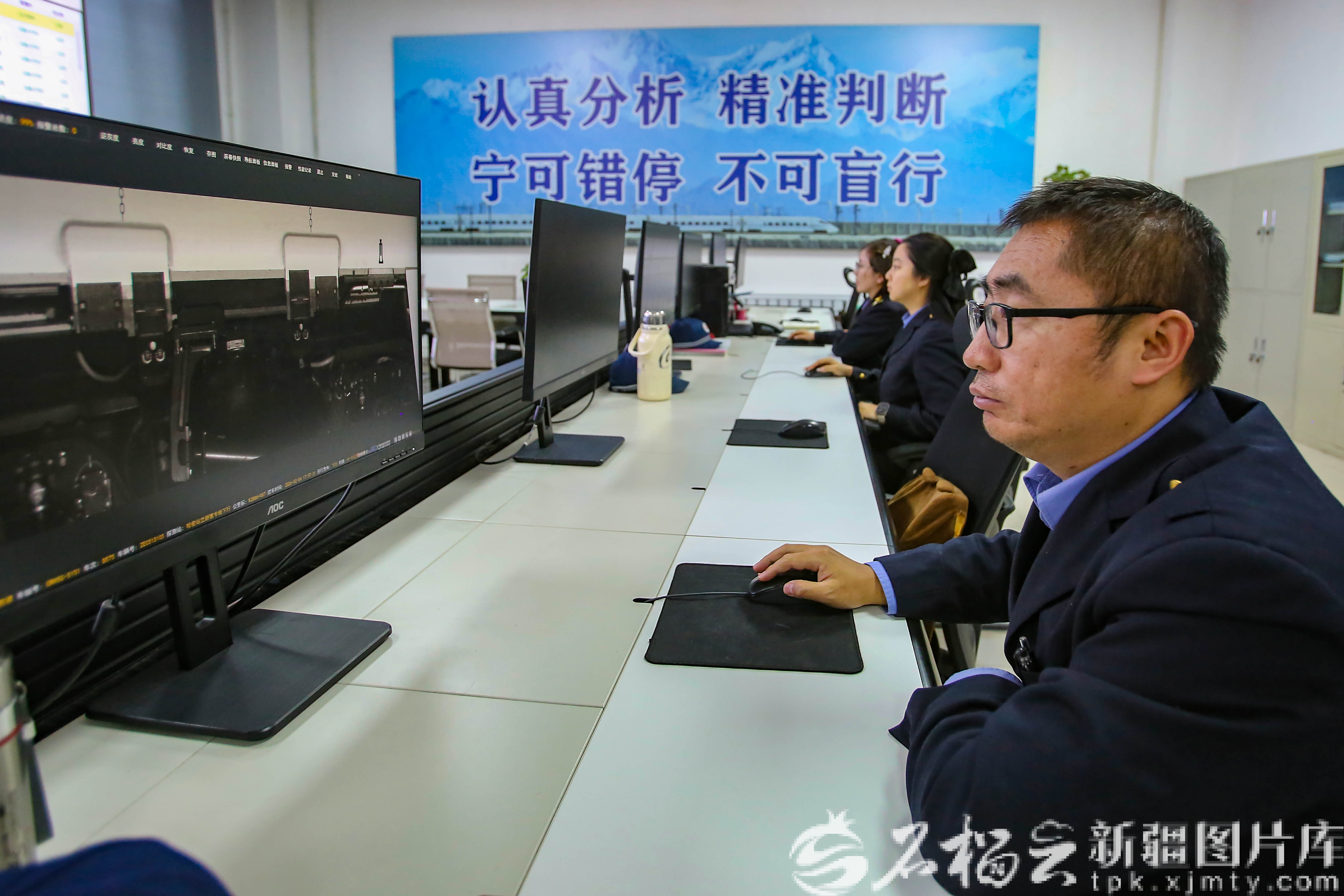2月4日,乌鲁木齐车辆段动车运用所TEDS分析中心技术人员在查看分析监测站回传影像资料,该中心是动车组运行故障动态图像检测系统被誉为“幕后大脑”和“云端哨所”,对高速运行中的动车组进行非接触式、实时的远程“体检”。
