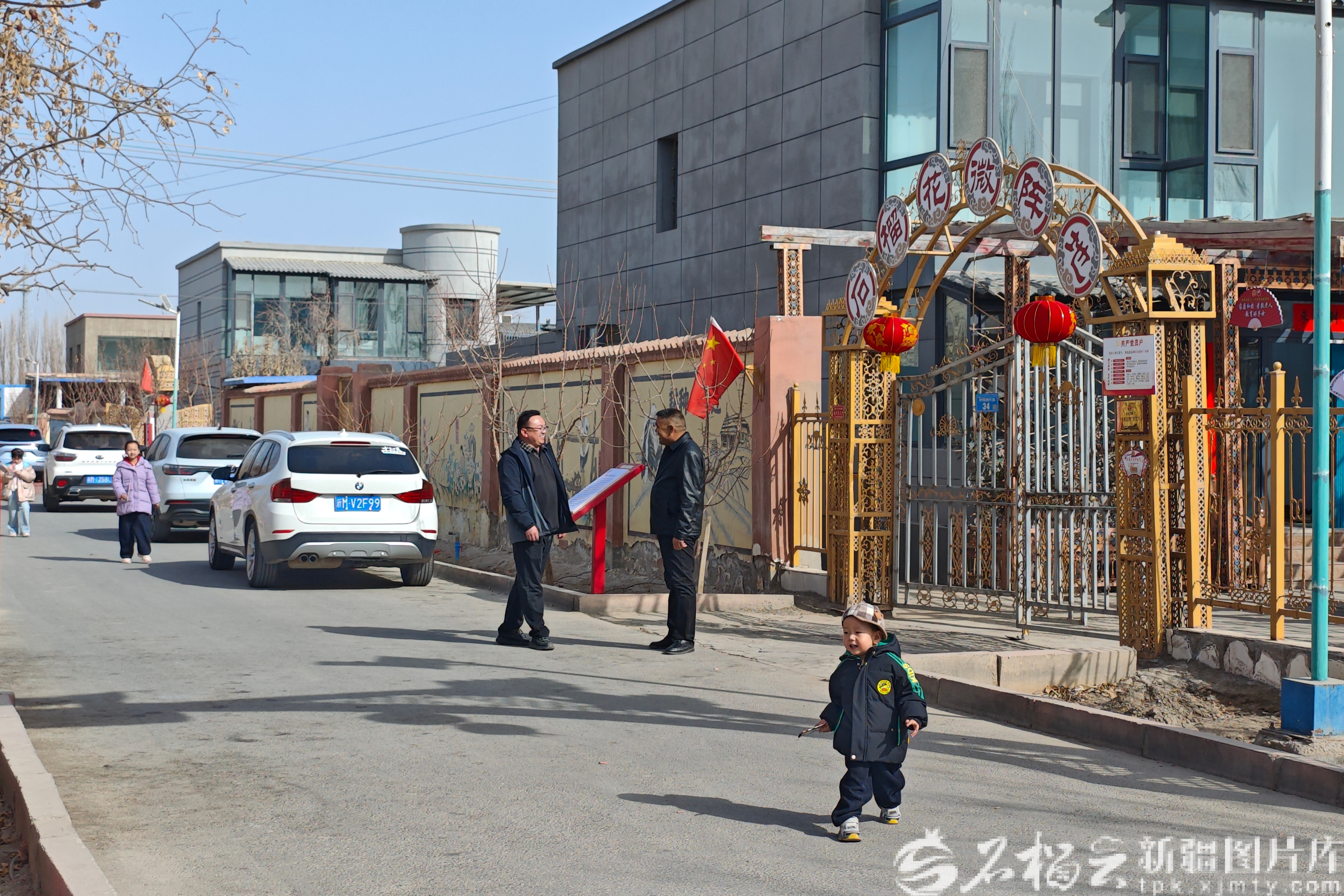 巷口朱红鎏金的拱门下,“石榴巷”三个字被阳光照得发亮。柏油路扫得干干净净,家家户户住的都是二层小楼,门楣上福字还是簇新的。800多米长的小巷里,住着9户汉族和9户维吾尔族人家。