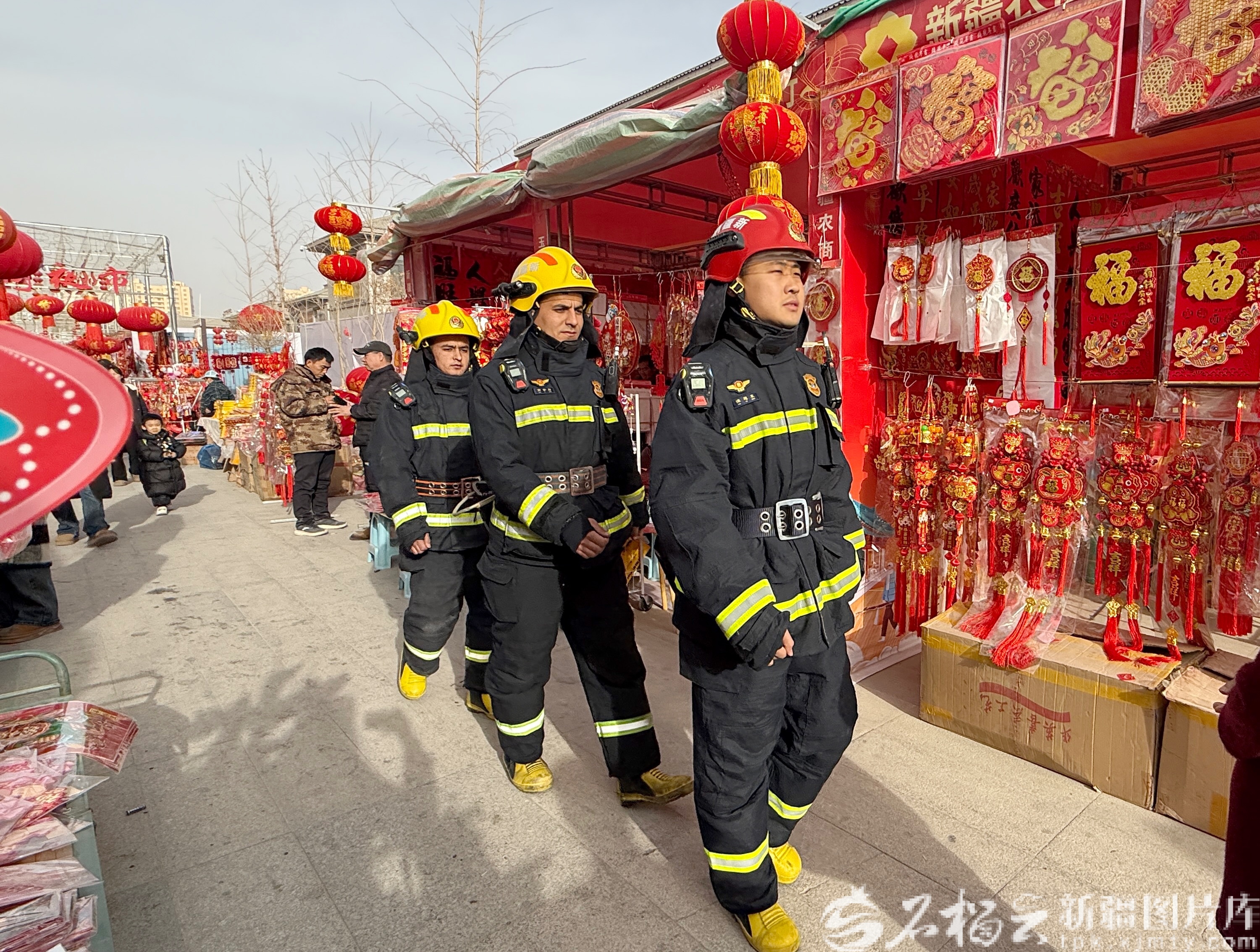 2月12日,谭旭东和队员们来到2026年和田市年货街巡查。王雪莲 摄