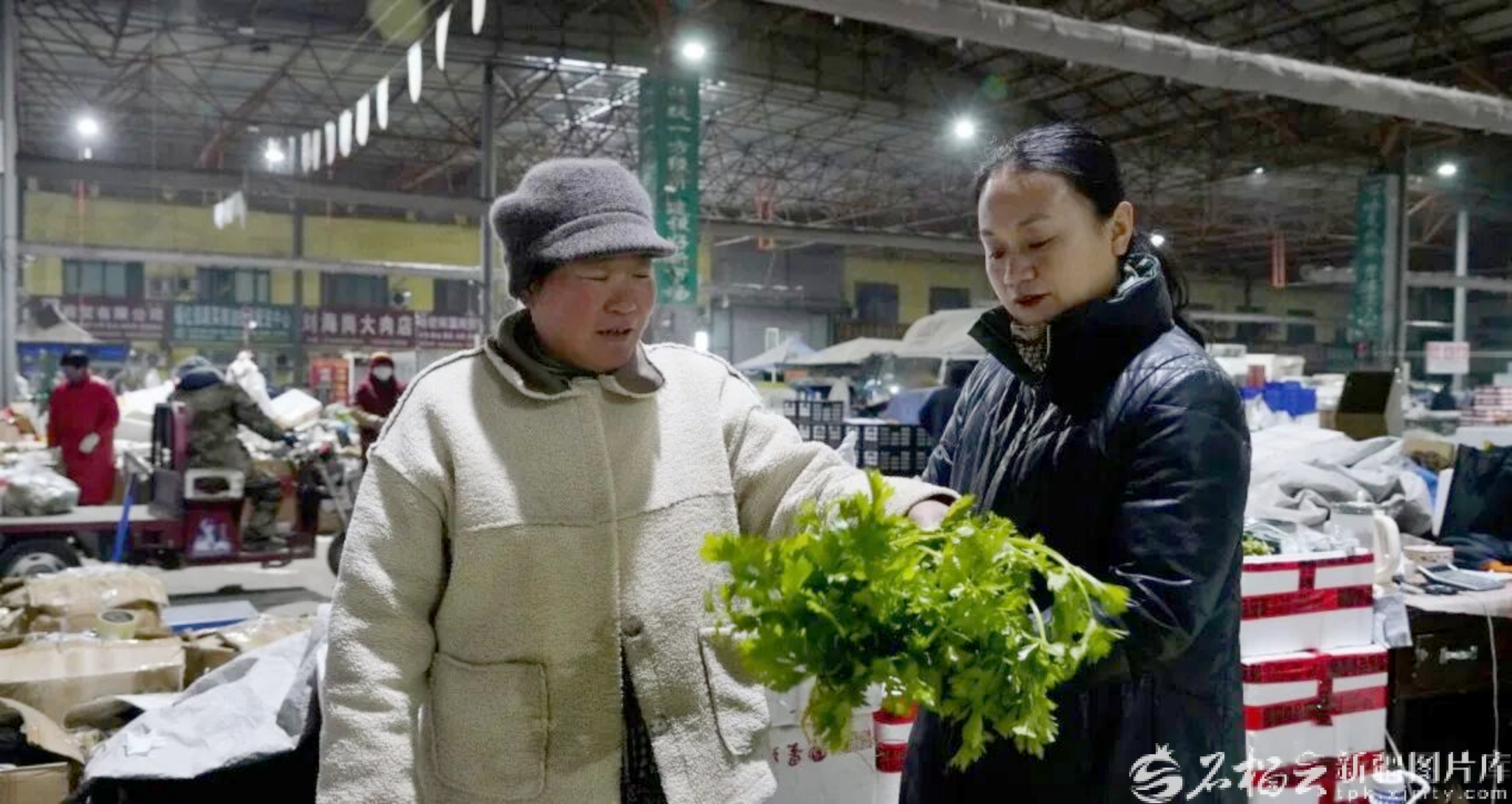 “这车16吨蔬菜刚到,有三四十个品种,大白菜、西红柿、黄瓜、辣椒都有,保证市民过年能吃上新鲜菜。”蔬菜批发配送中心经营者马鹏帅一边指挥工人卸货,一边笑着对记者说。他的摊位前,工人们手脚麻利地分拣、打包蔬菜,忙得热火朝天。