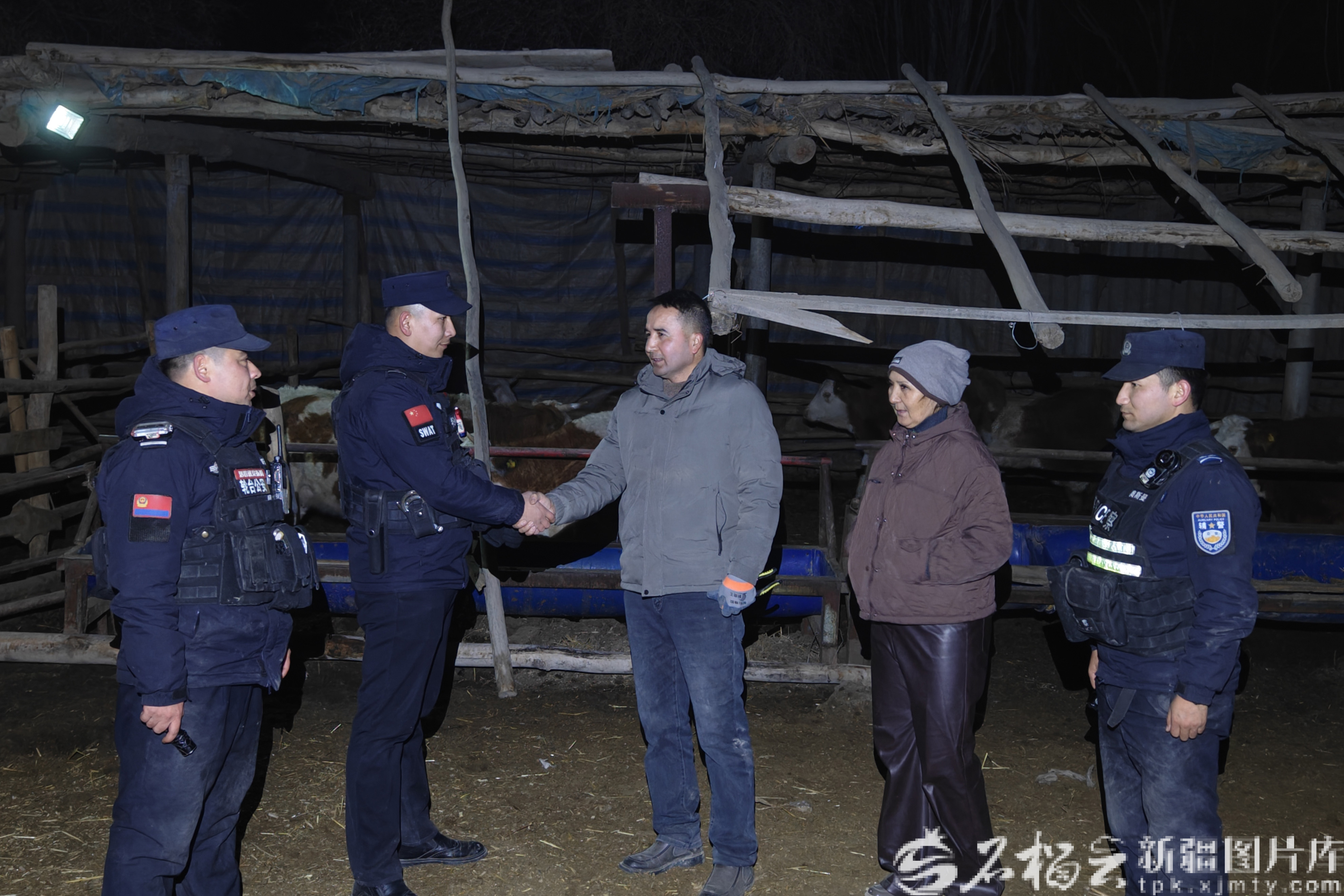 在轮台县哈尔巴克乡,除夕夜烟花声惊散了牧民艾合麦提·吾舒尔的13头牛。轮台县公安局哈尔巴克乡派出所副所长伊德日斯·亚森带着民辅警打着手电筒,在棉花地和芦苇丛中深一脚浅一脚地搜寻。凌晨3时,当最后一头牛被赶回牛圈,这家人握紧民辅警冻僵的手,久久说不出话。