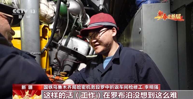 国铁乌鲁木齐局哈密机务段罗中折返车间检修工 李明强:挺紧张的,这种事第一次遇见,这样的工作在罗布泊没想到这么难,不过也挺锻炼人的,要不是因为这份工作,也没机会到这里来,这么一想,也挺自豪的。
