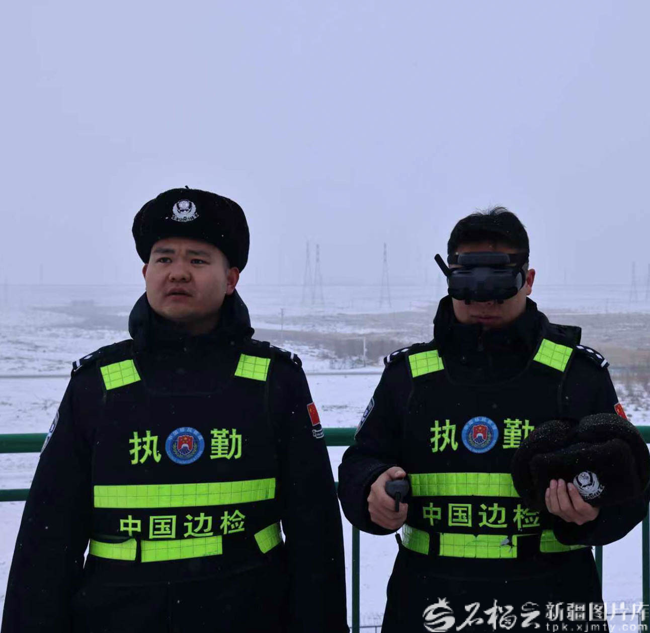 2月15日,在阿拉山口铁路综合场,民警用穿越机对出境车辆进行查验。曹梦阳摄