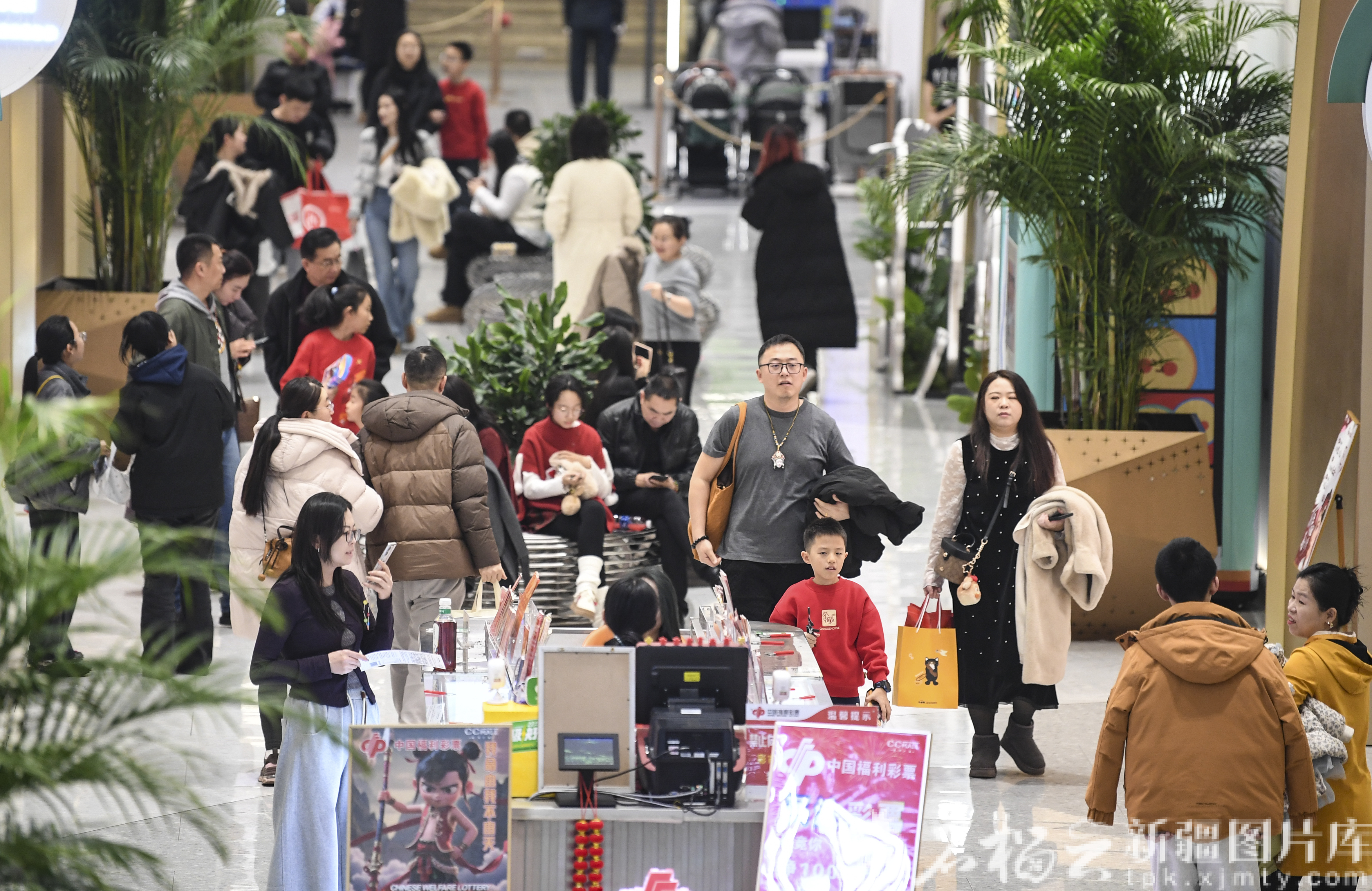 2月20日,市民在乌鲁木齐CCMALL时代广场休闲购物。