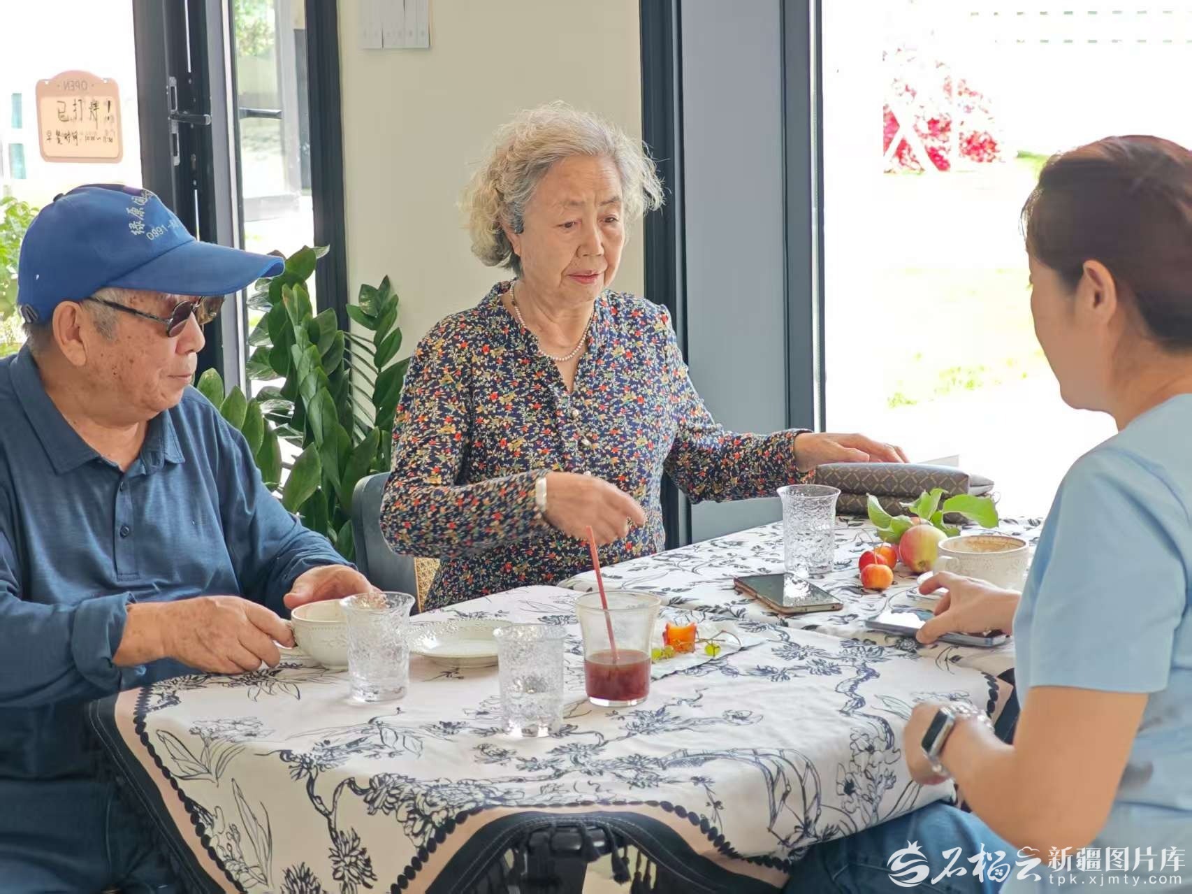游客正在民宿茶坊喝茶聊天晒太阳。天山网-新疆日报记者 阿比拜摄