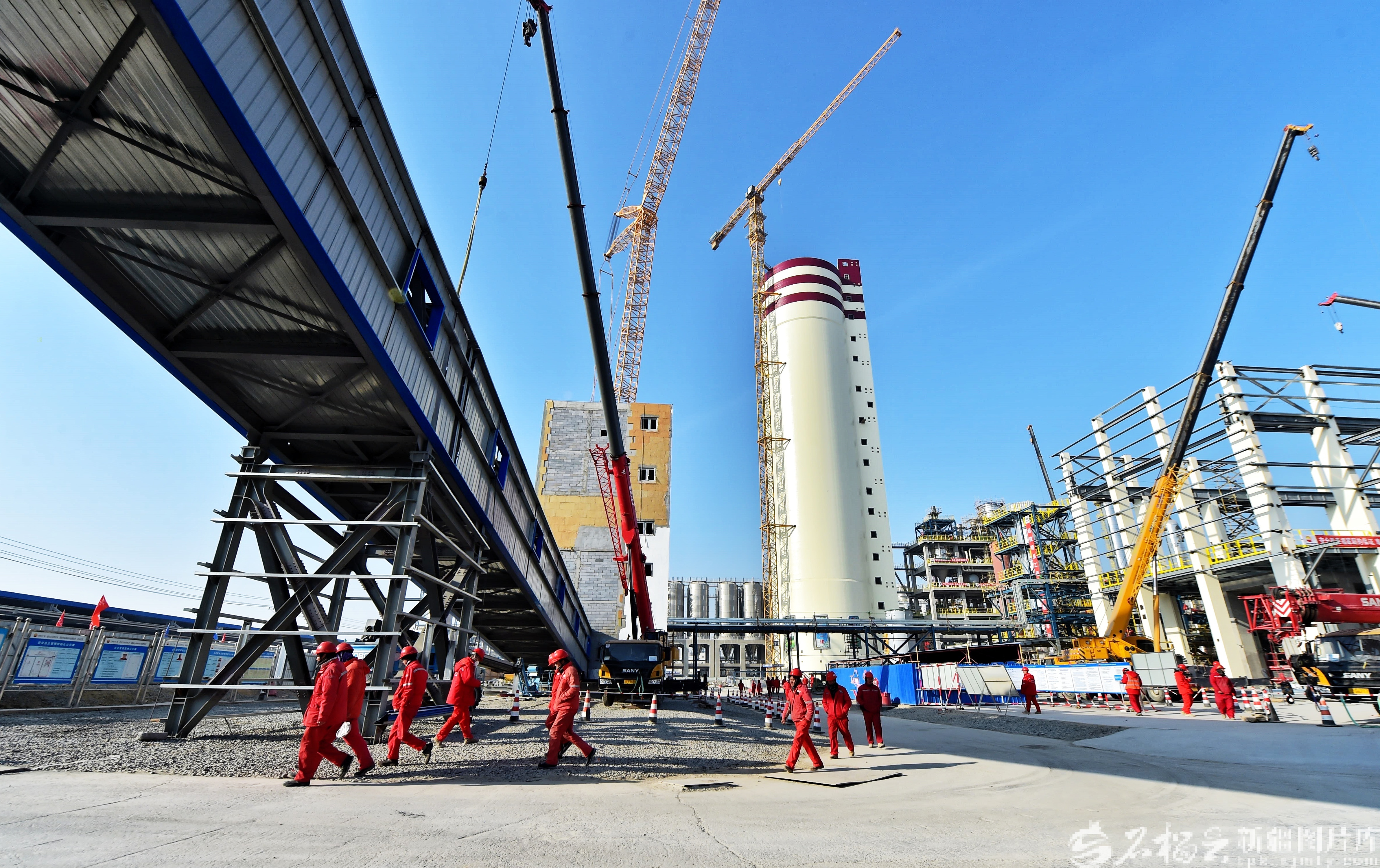 2月19日,位于库尔勒上库高新技术产业开发区的独山子石化塔里木大化肥装置搬迁改造项目施工现场一派繁忙,工人们正加班加点,力争项目早日投产。天山网-新疆日报记者王立华摄