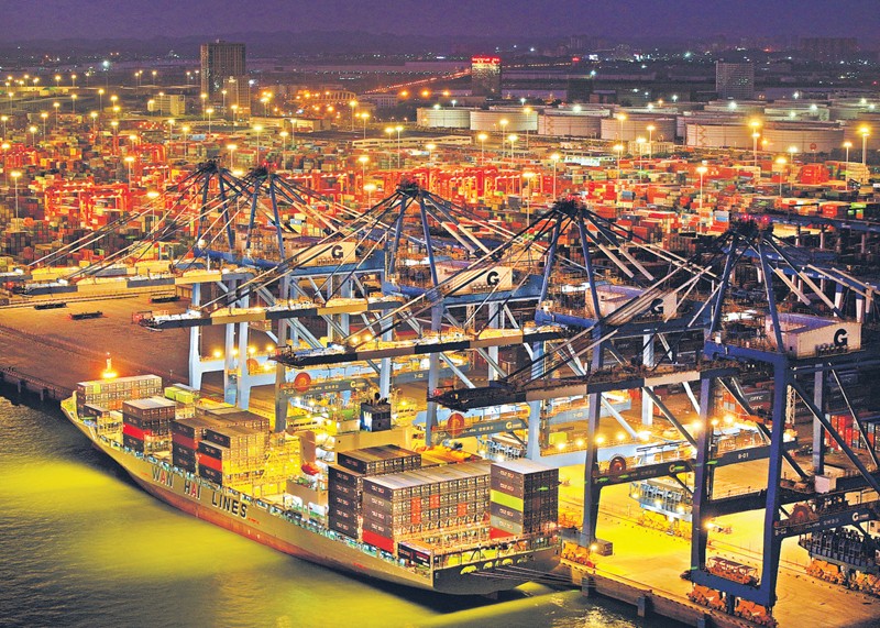 广西北部湾港钦州港集装箱码头灯火通明,一派繁忙景象。广西云-广西日报记者周军摄