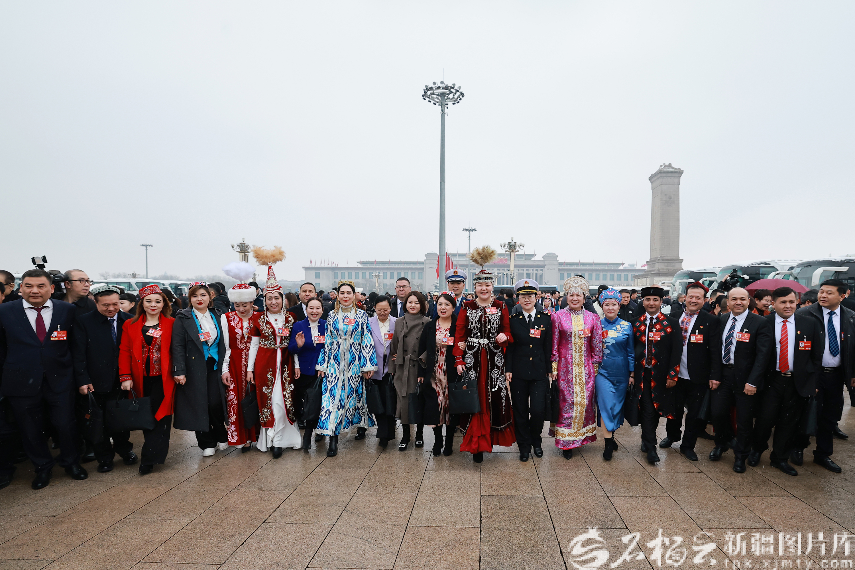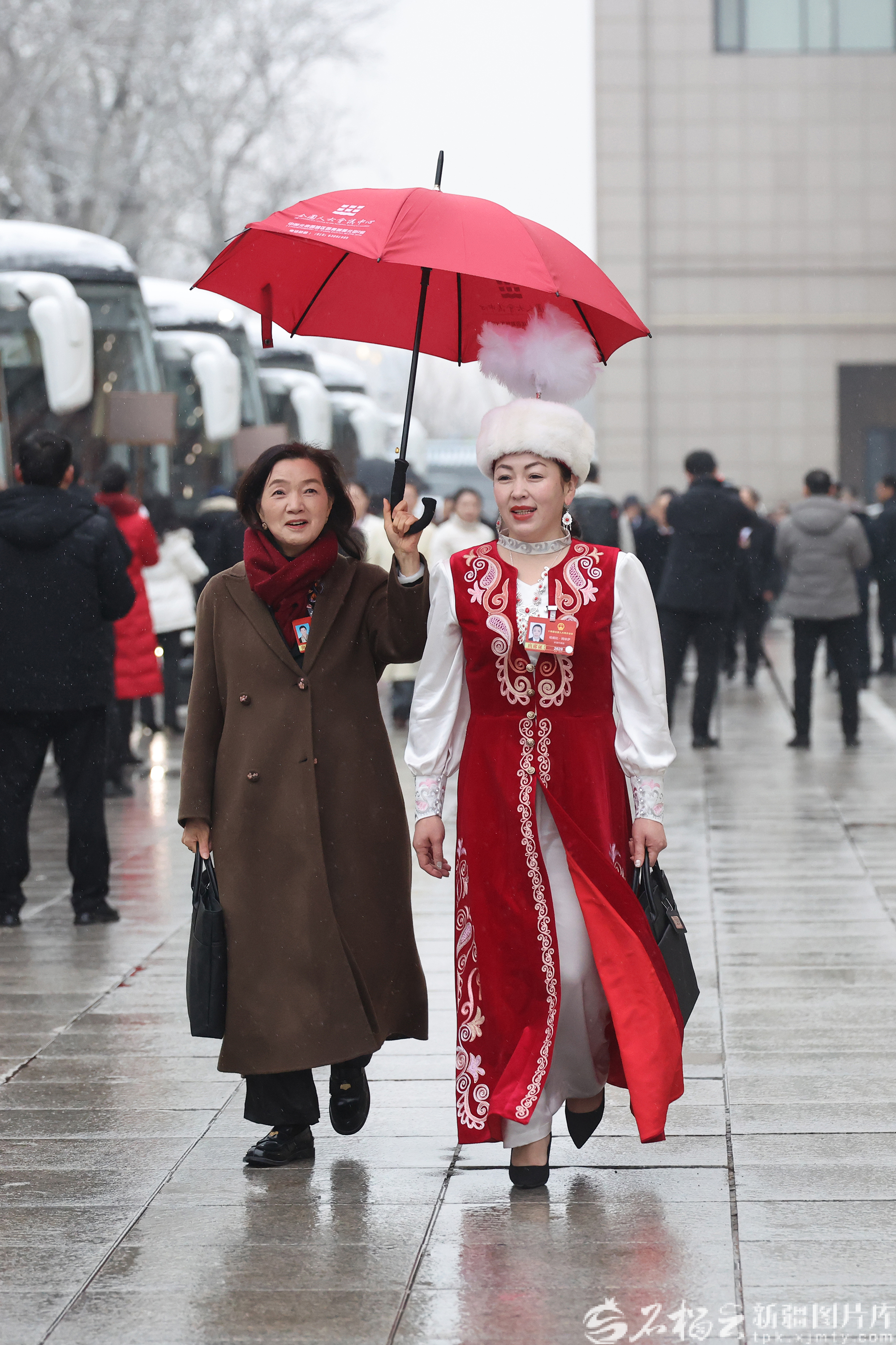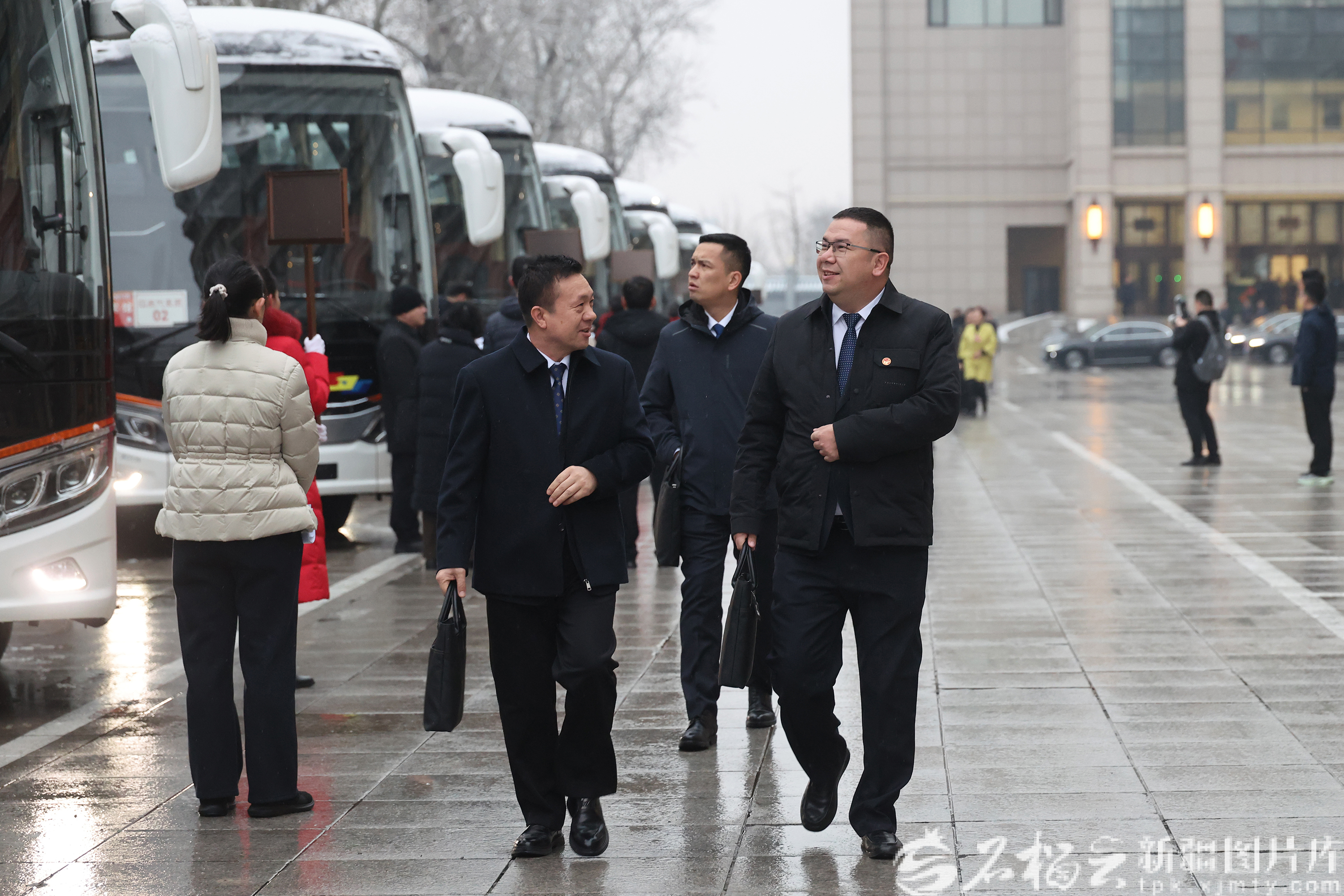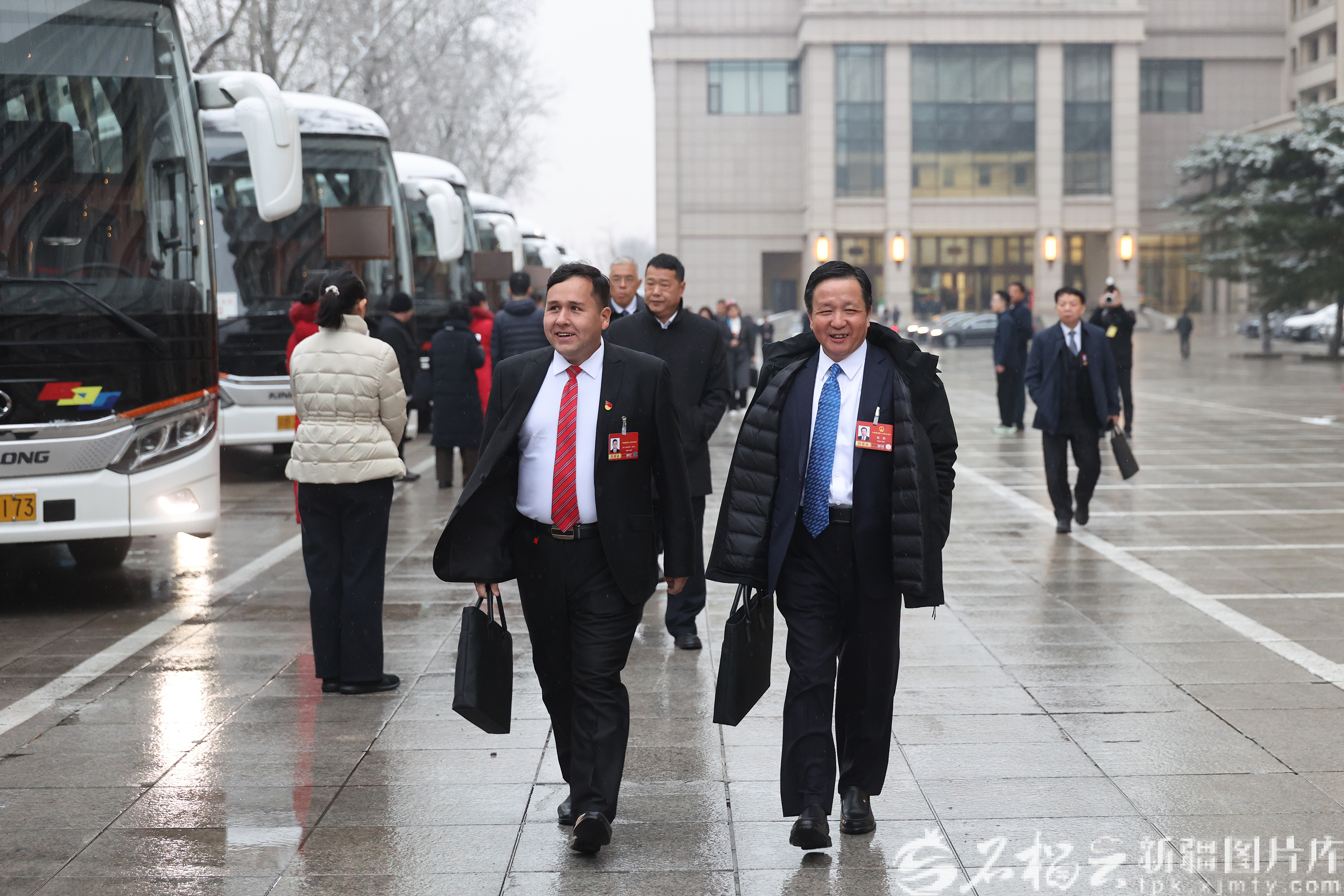 3月5日,十四届全国人大四次会议在北京人民大会堂开幕。图为新疆代表团代表准备从驻地乘车出席开幕会。石榴云/新疆日报记者 崔志坚摄