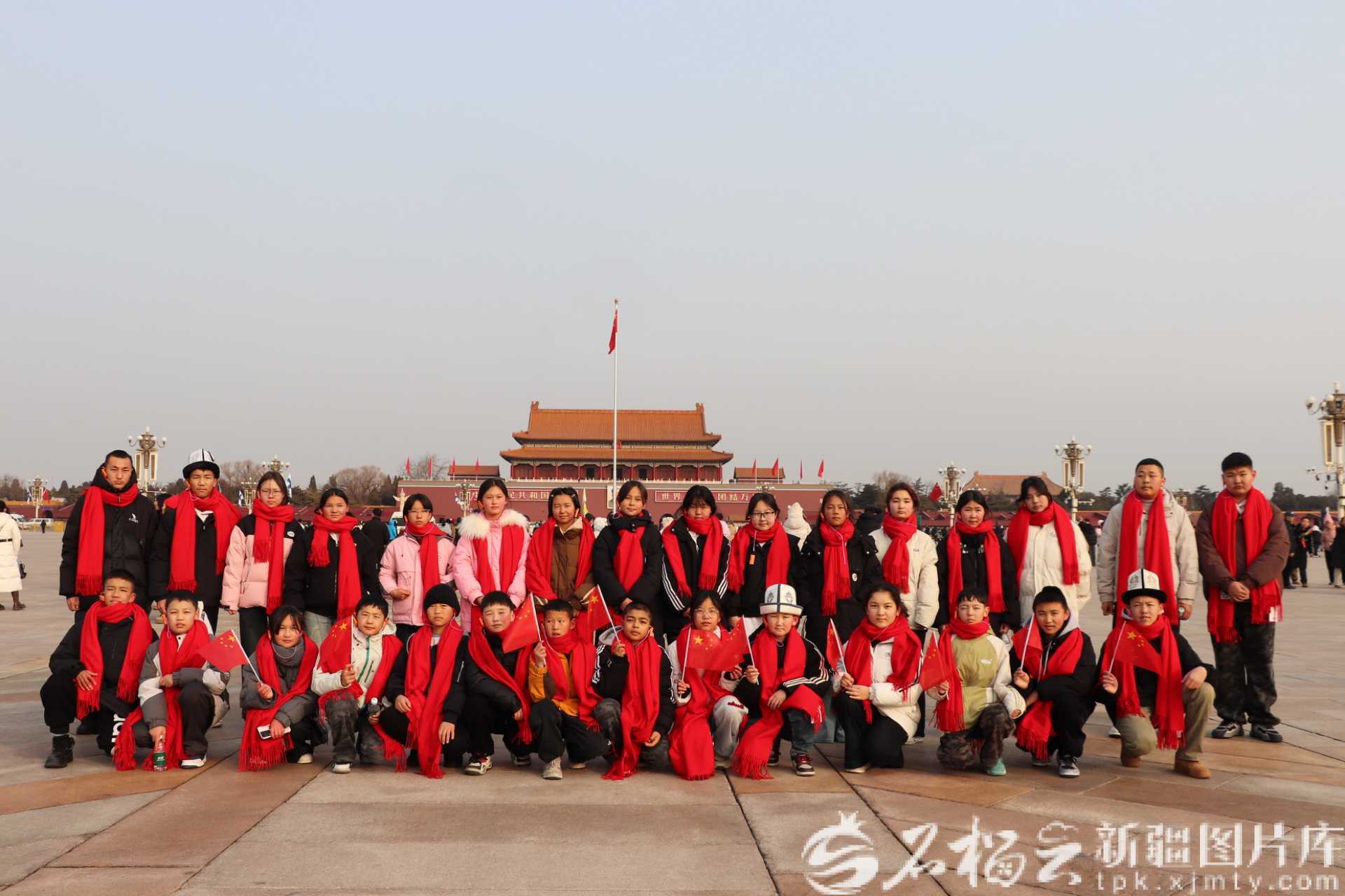 赴北京研学的乌恰县中小学生在天安门广场合影。新疆贸促会供图