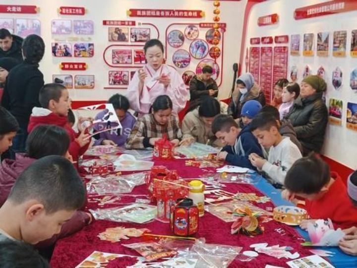 活动室另一侧,孩子们认真制作民族团结主题花灯,16岁的艾尼帕·阿吉艾力格外开心。去年她因病休学,在社区和学校的关怀下顺利康复,即将重返校园,能和伙伴们共度佳节,让她倍感温暖。