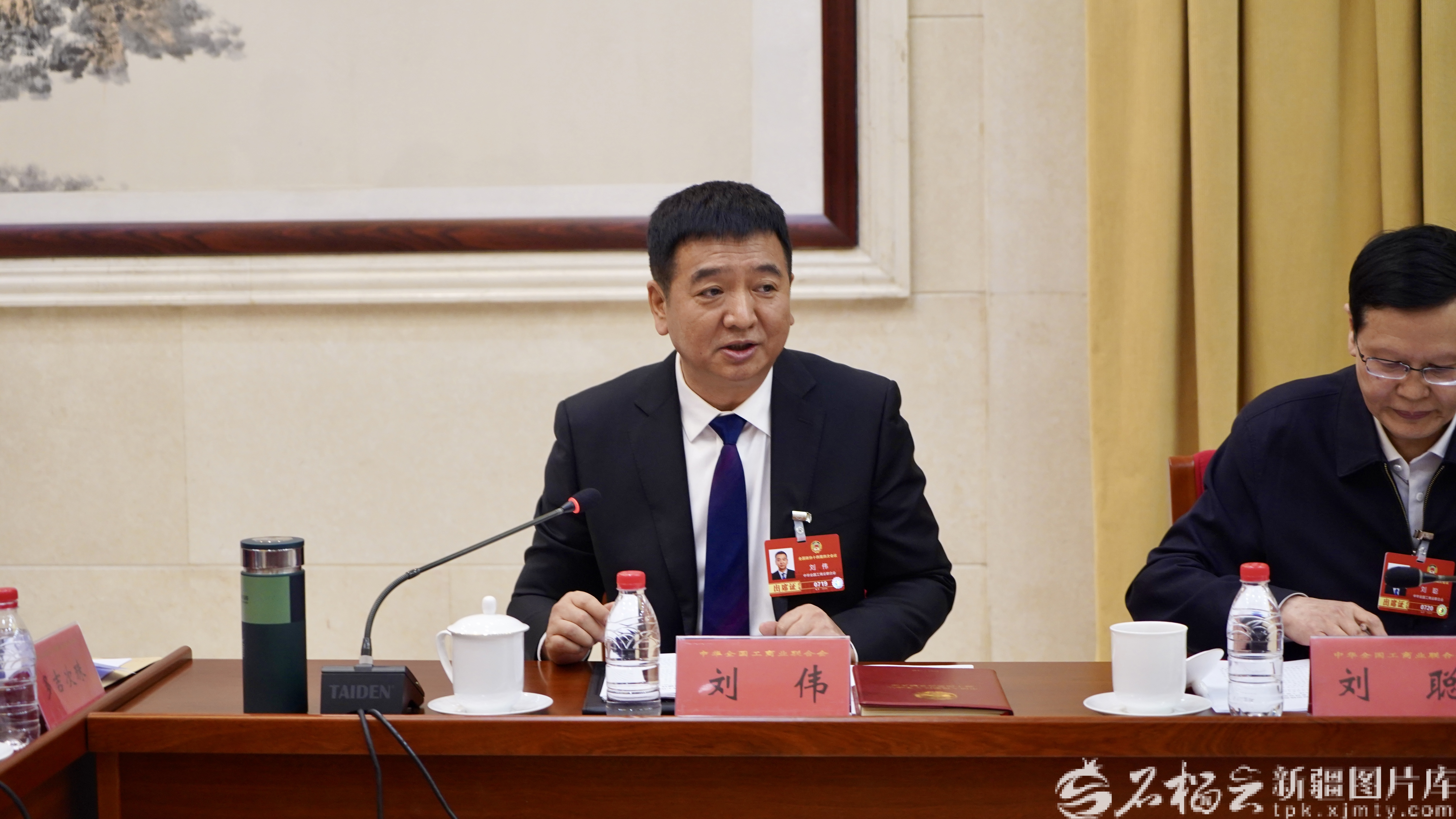 3月9日下午,出席全国政协十四届四次会议的住疆全国政协委员分别参加所在界别的小组会议,讨论“两高”工作报告,审议各项决议和报告草案。图为住疆全国政协委员刘伟在小组会议上发言。石榴云/新疆日报记者 王昕摄