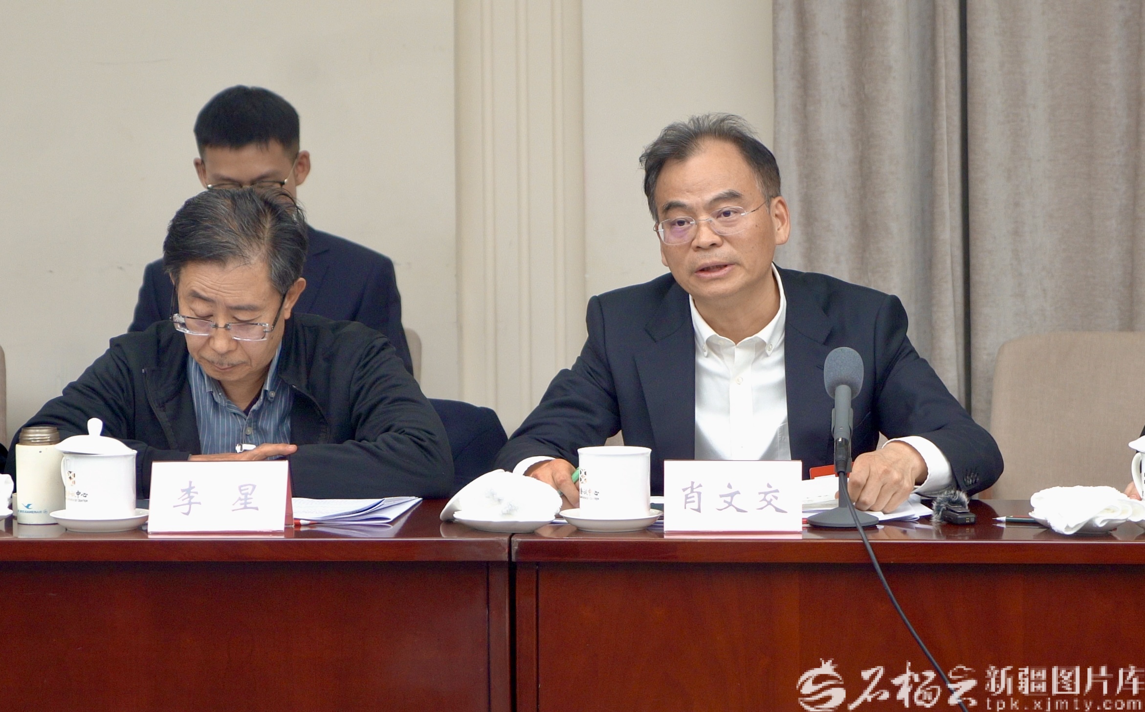 3月9日下午,出席全国政协十四届四次会议的住疆全国政协委员分别参加所在界别的小组会议,讨论“两高”工作报告,审议各项决议和报告草案。图为住疆全国政协委员肖文交在小组会议上发言。石榴云/新疆日报记者 王昕摄