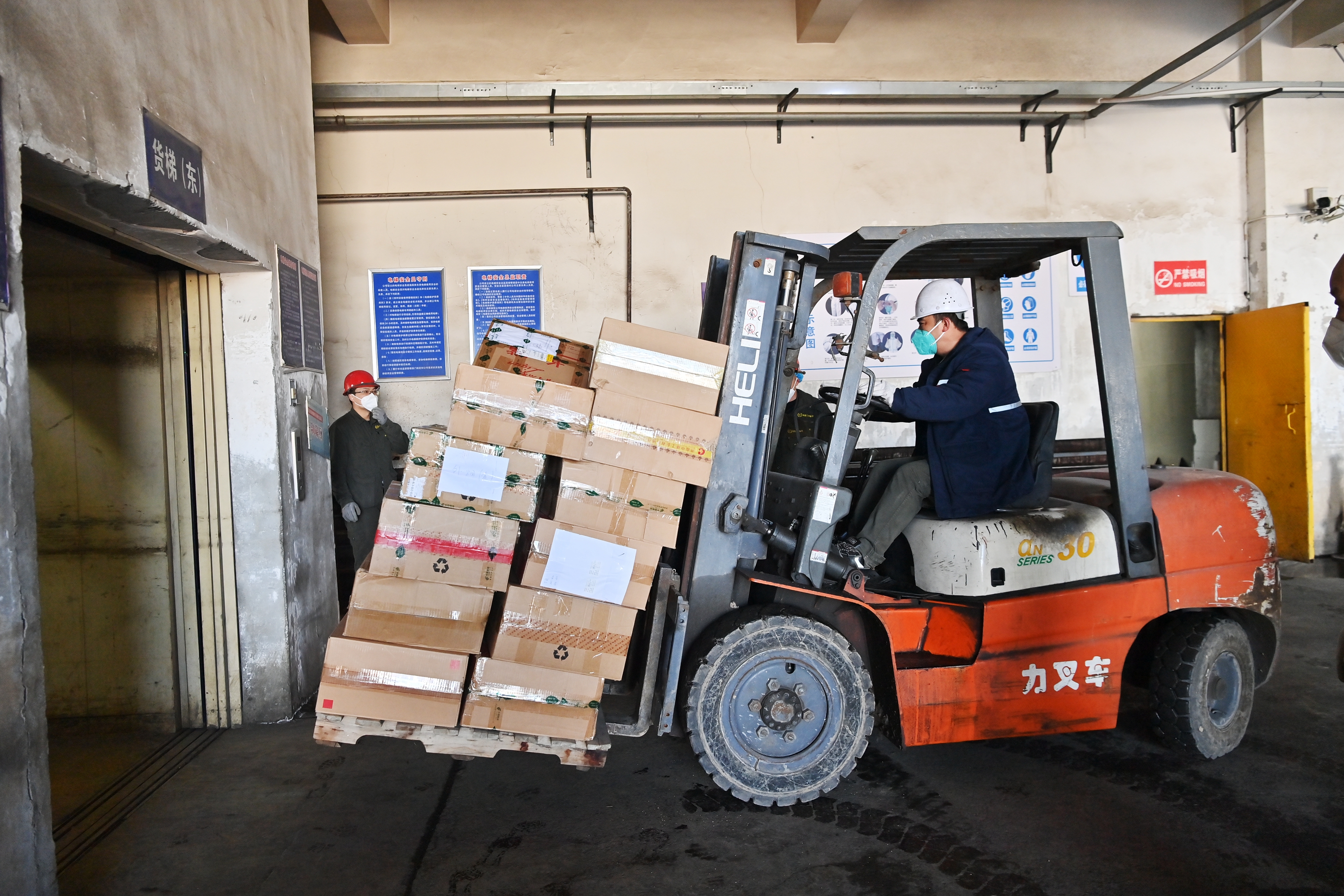 3月13日,工作人员将销毁的物品运送到焚烧炉。石榴云/新疆法治报记者 单坤摄