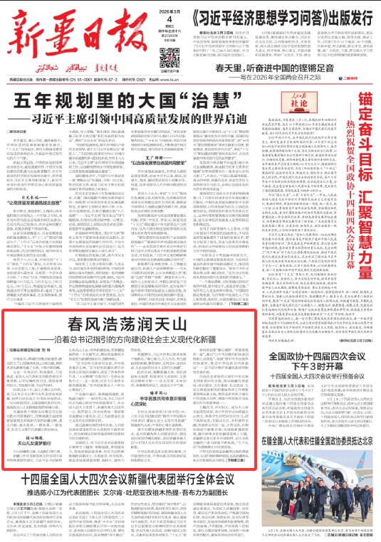 2026年全国两会的春风,为天山南北的发展注入了强劲动力。