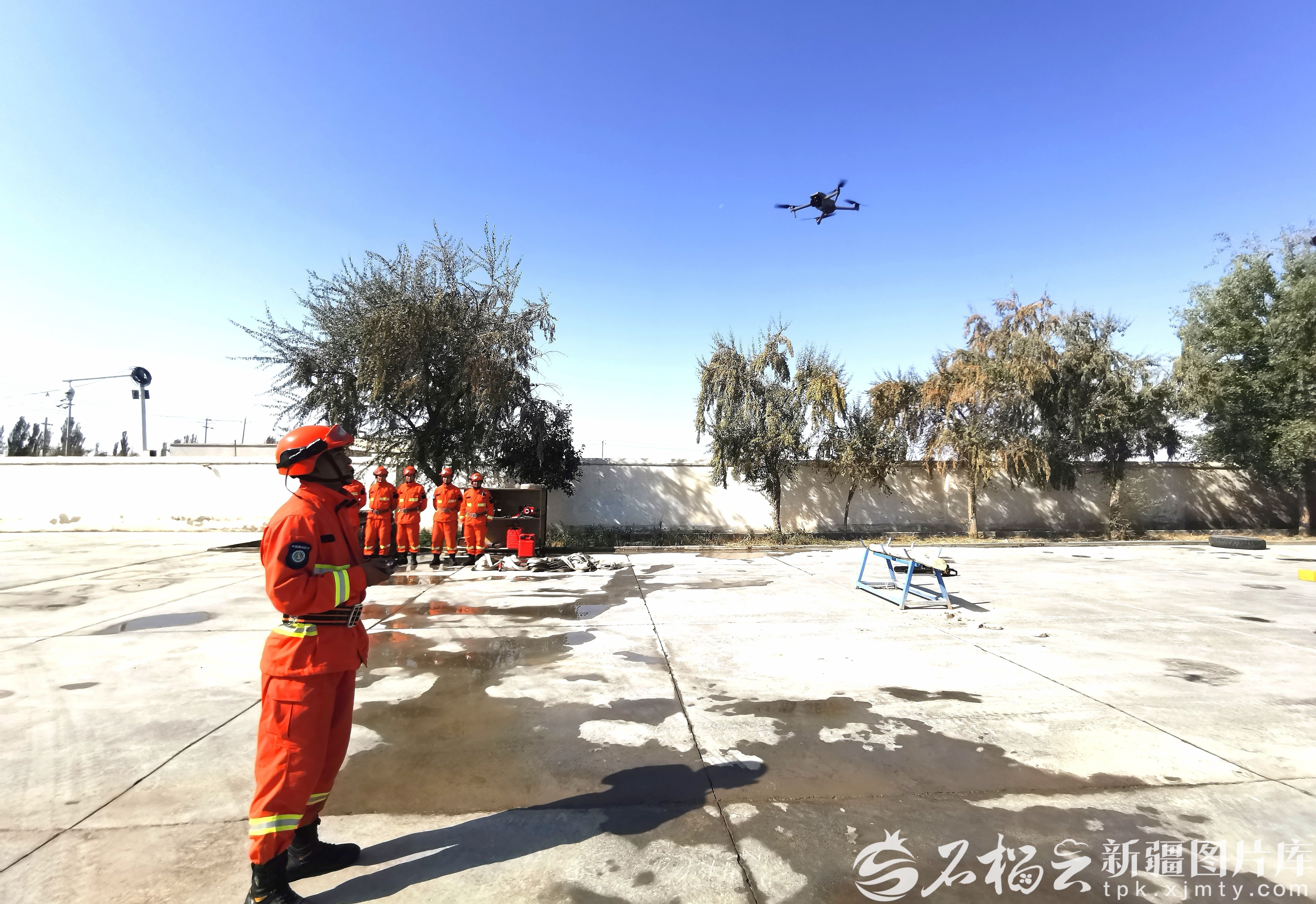 沙雅县森林草原消防应急分队演练无人机火情侦查,守护原始胡杨林(资料图片)。记者 曹华摄
