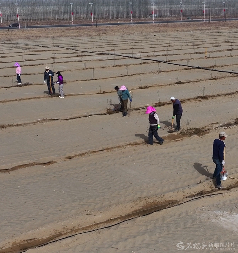 春季植树正当时,群众在于田县中药材种植示范基地周边植树。阿依奴尔·艾司卡尔摄