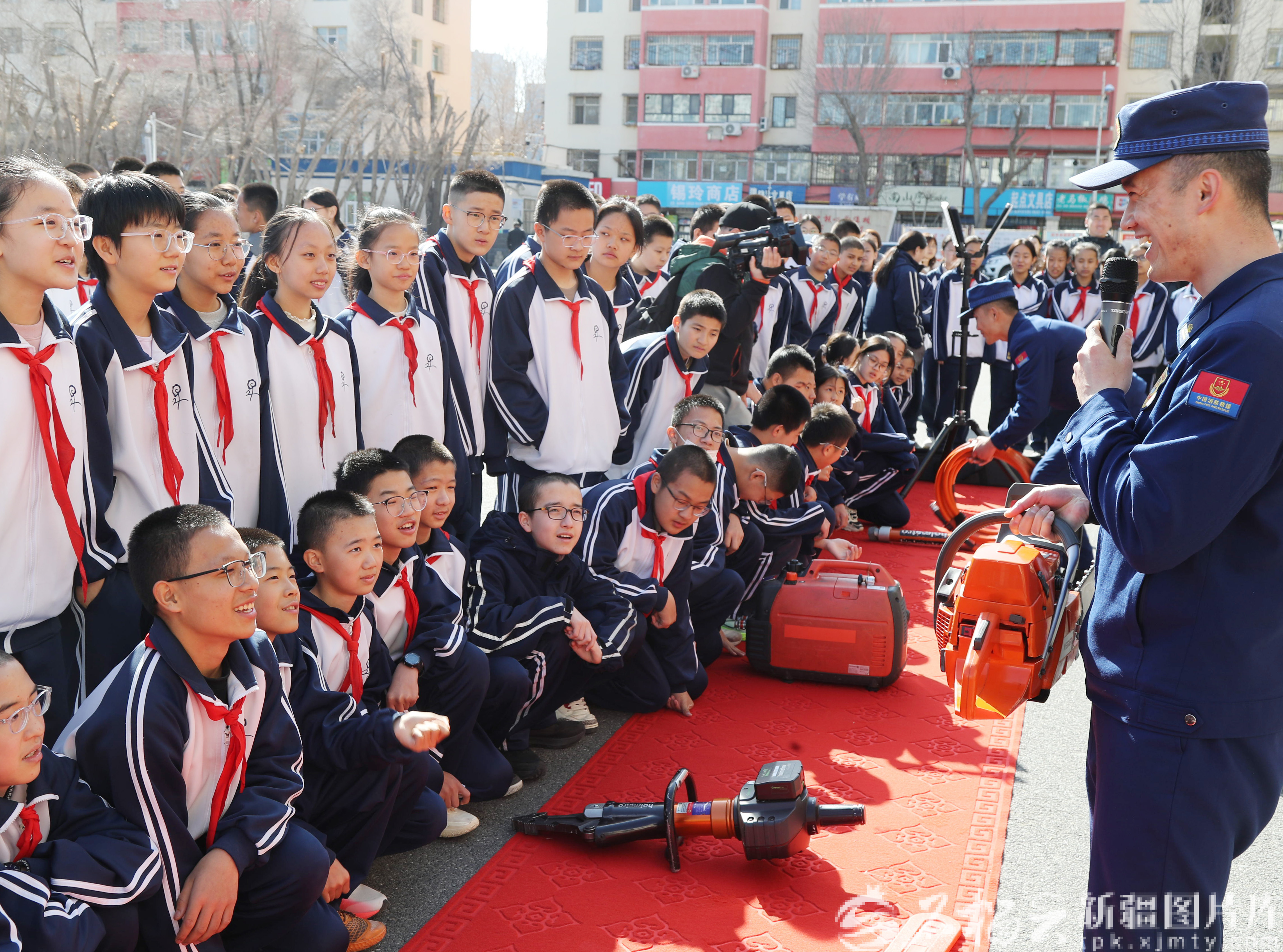 石榴云/新疆日报讯(记者 李雄心摄影报道) 在全国中小学安全教育日来临之际,为切实提升师生安全素养与应急避险能力,营造平安祥和的校园环境,3月26日,乌鲁木齐消防救援支队新市区大队联合乌鲁木齐高新技术产业开发区(新市区)教育局、乌鲁木齐市公安局交通管理支队高新区(新市区)大队,在乌鲁木齐市第29中学共同举办“守护成长”校园消防安全宣传教育活动,通过“演练+展示+宣讲”的形式,为师生上了一堂生动的安全实践课。