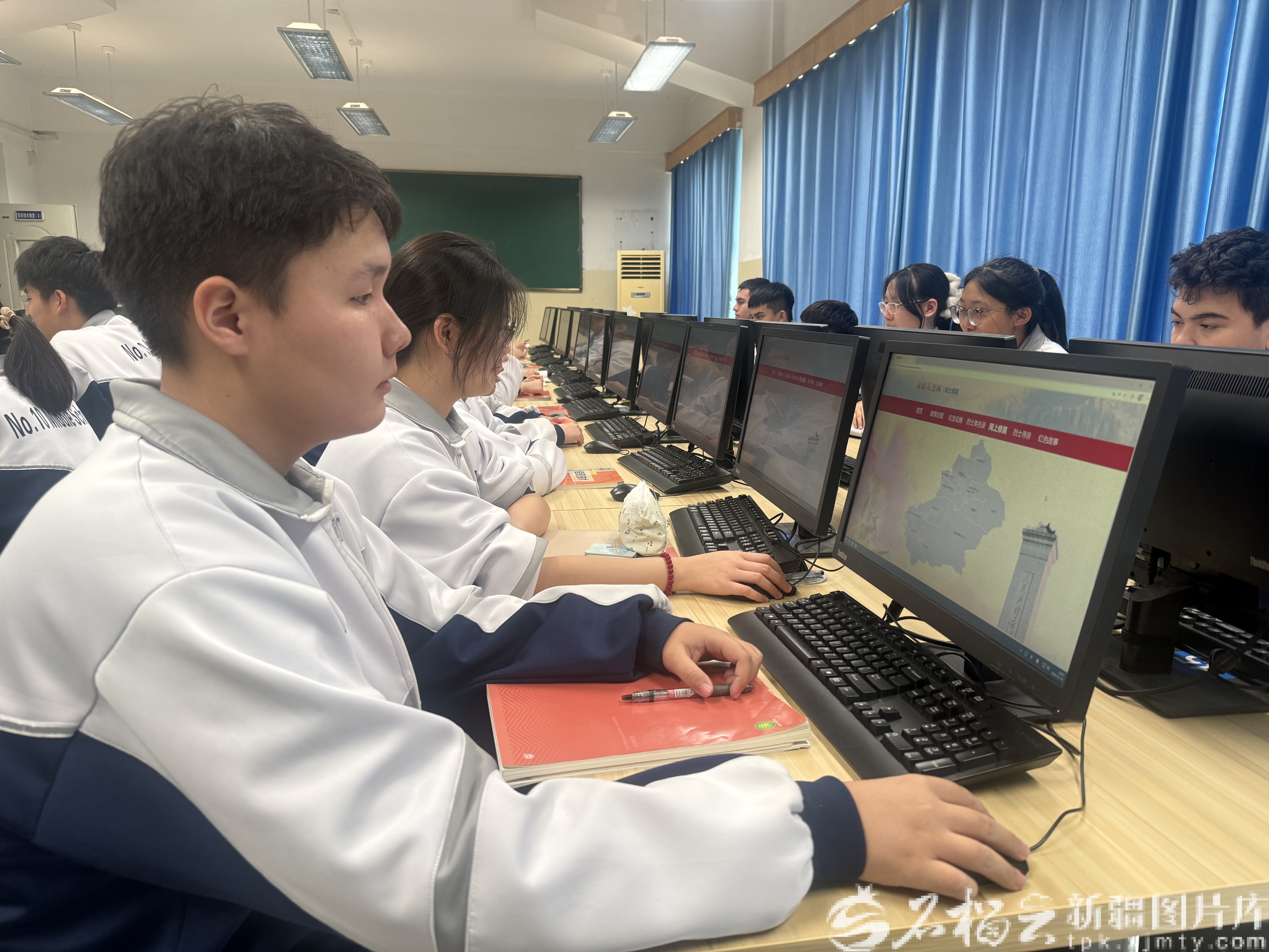 4月1日,温宿县第一小学学生观看英烈事迹视频。陈亚摄