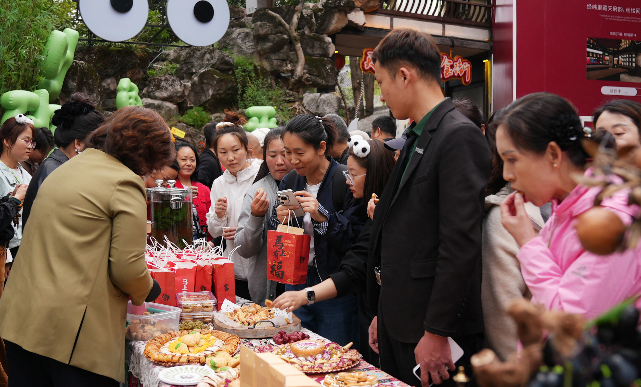 吐鲁番特色美食吸引成都市民游客驻足品尝。