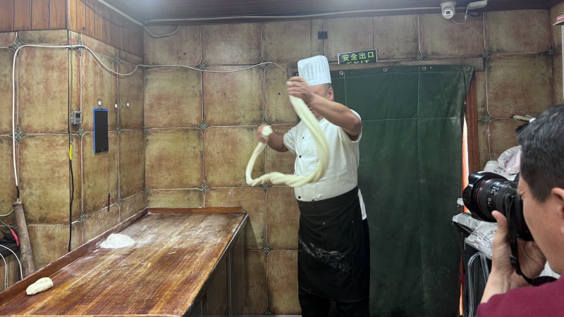 为让老手艺真正“活”下去,他开启了“云传承”模式。在抖音和微信公众号上,他不光教怎么做面,还讲述食材背后的文化故事,让更多人了解库车非遗。通过线上招募,他已经收了28个徒弟,手把手教拉面,毫无保留传秘方。“老手艺不是用来藏着的,是用来传下去的。只要有人真心想学,我就倾囊相授。”于散江说。