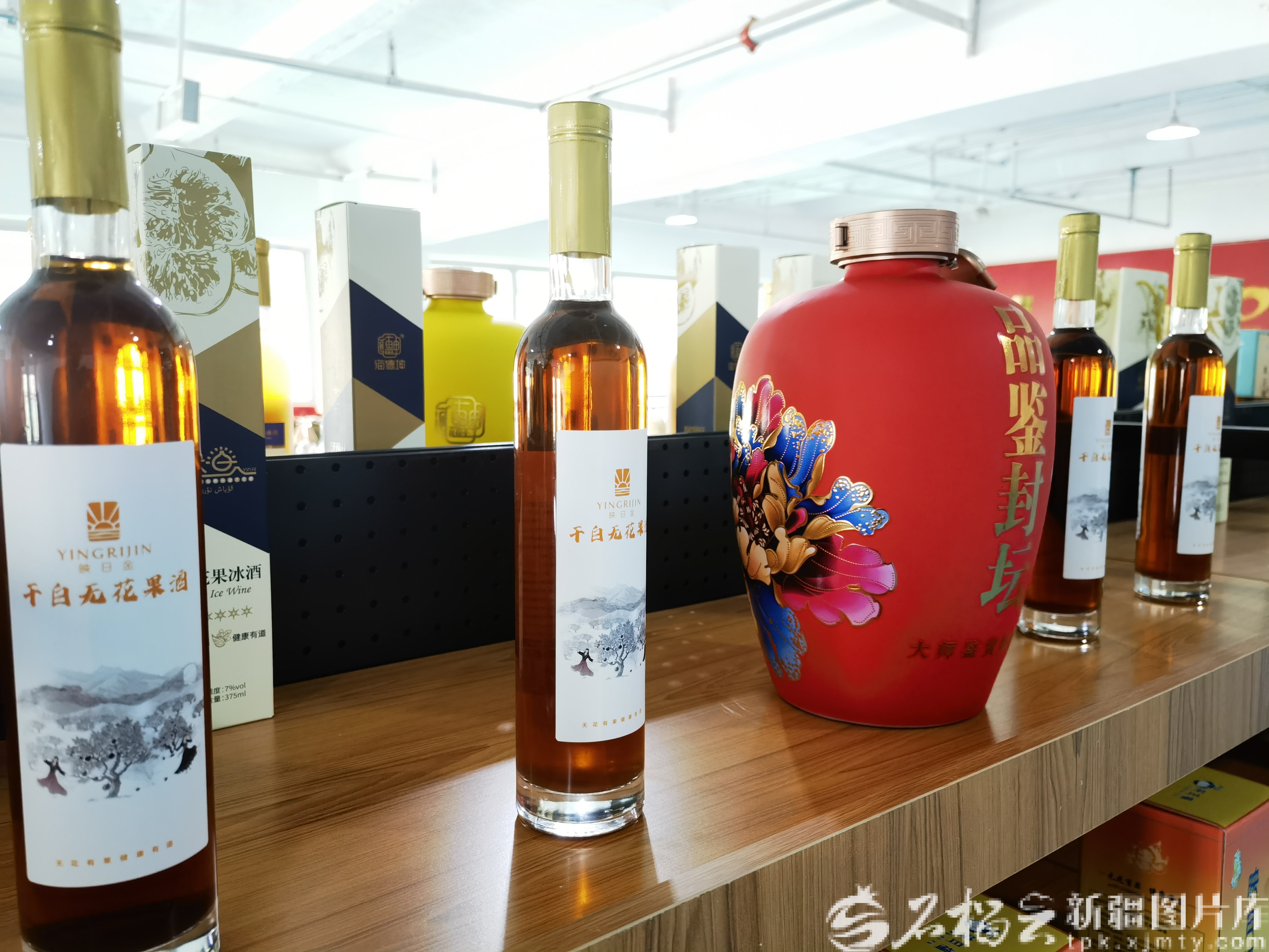 在新疆海德坤农业科技有限责任公司产品展示区,无花果酒整齐陈列。天山网-新疆日报记者 陈疆林摄