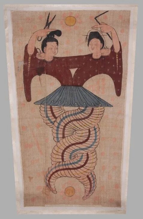 展览将展出的“彩绘伏羲女娲麻布画”。新疆博物馆供图