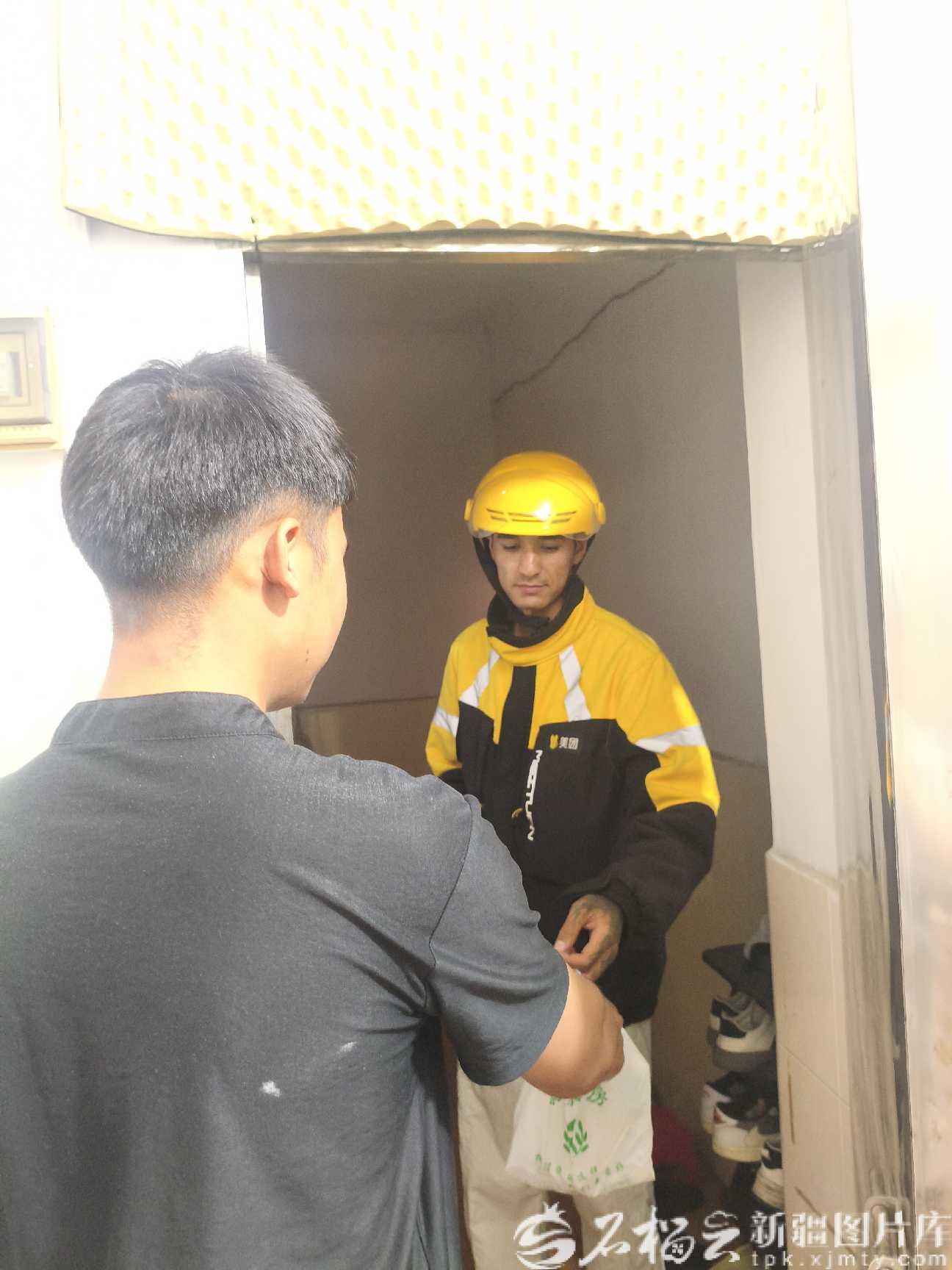4月14日,艾孜热提艾力·阿布都热西提在给客户送外卖。本人供图