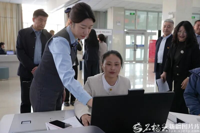 近日,塔城地区政务服务与公共资源交易中心组织开展“领导干部进大厅走流程”专项活动,图为大家在“个转企”业务办理专区体验办事全流程。塔城地区融媒体中心供图