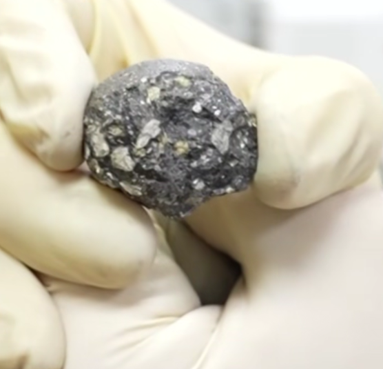 该陨石为单颗球状,重44克,表面覆盖深色熔壳。科研人员在其中发现新矿物“铈镁嫦娥石”,经国际矿物学协会批准,其成为人类发现的第十一种月球新矿物,也是月球陨石中发现的第三种月球新矿物。