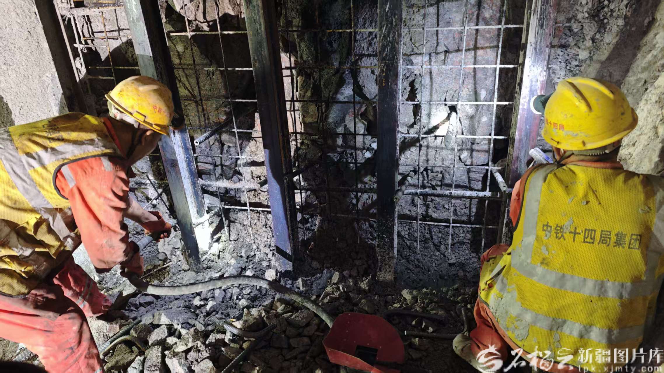 施工人员在新疆若羌抽水蓄能电站供水管线隧洞内加固围岩。张新宜摄(资料图)