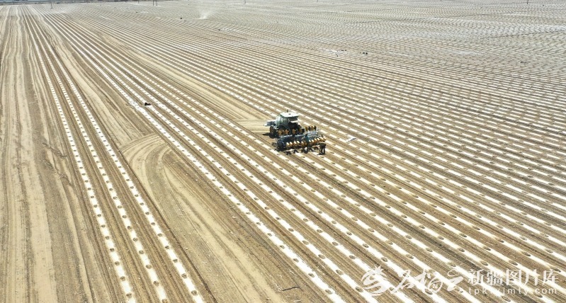 4月初,在托克逊县库米什镇,搭载北斗导航系统的播种机正在精准作业。(资料图片)