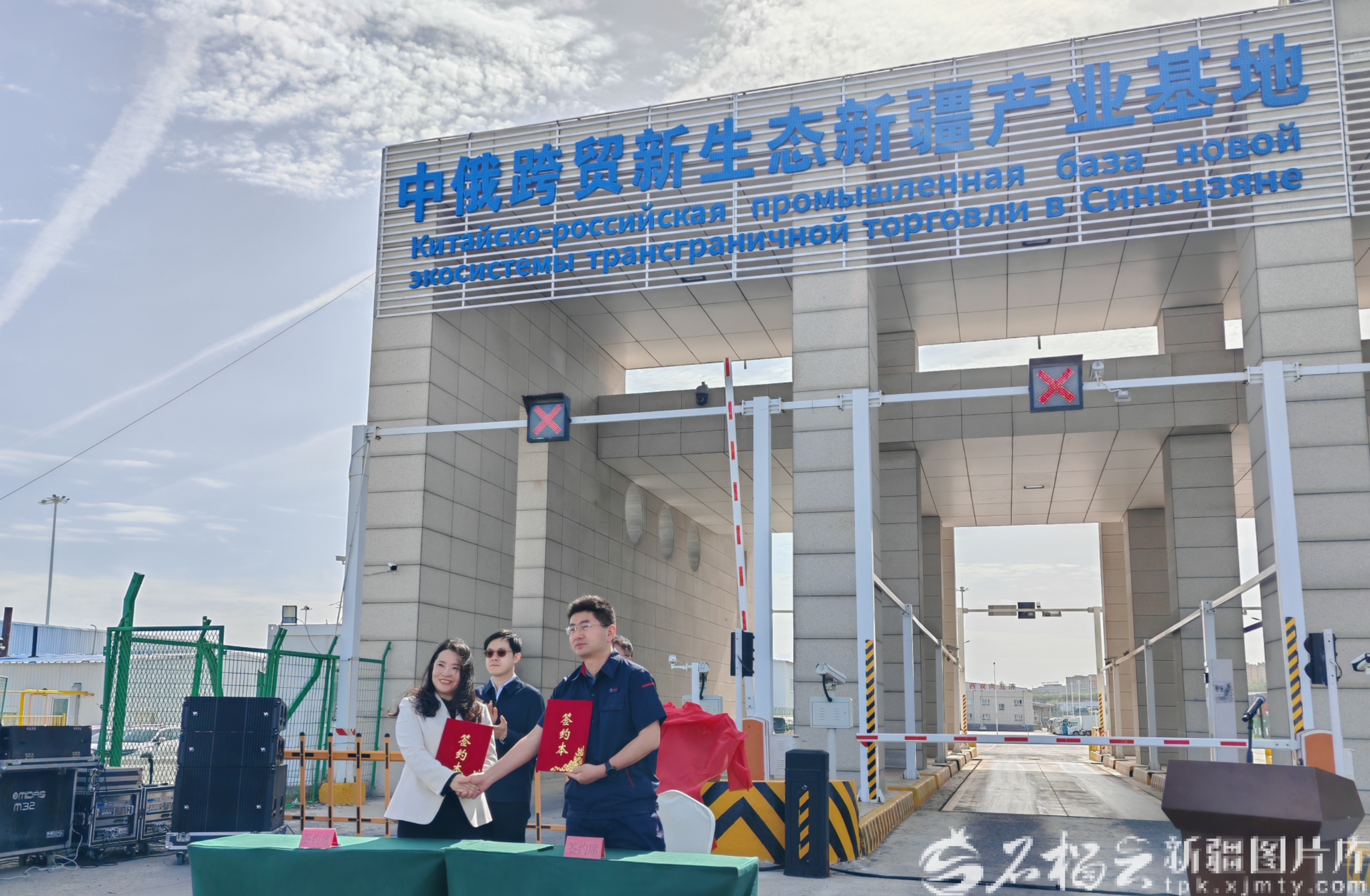 4月28日,中俄跨贸新生态新疆产业基地签约暨揭牌仪式现场。