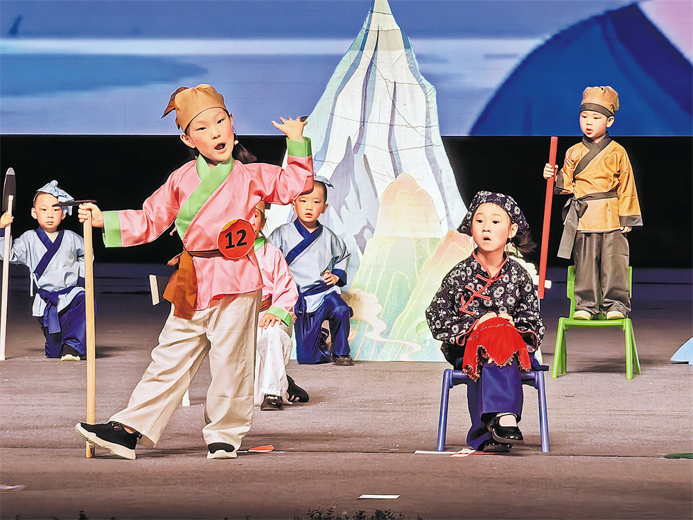 大赛现场,幼儿表演课本剧。 (通讯员再丽盼·乌斯满江 摄)