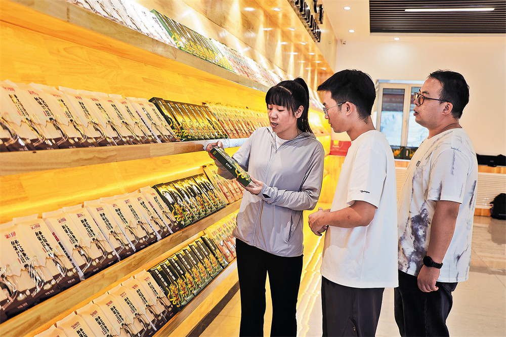 阿拉山口市金沙河面业有限责任公司销售人员向顾客介绍产品。