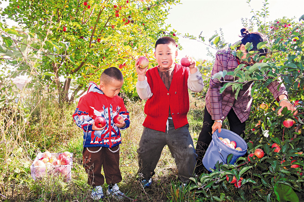 “平时工作忙,难得有假期能出来放松,摘苹果既能亲近自然,又能收获新鲜水果,特别解压。”游客窦红梅说,她已连续好几年来这里采摘苹果,今年还特意带了外地朋友,一同感受田园风光,采摘新鲜苹果。