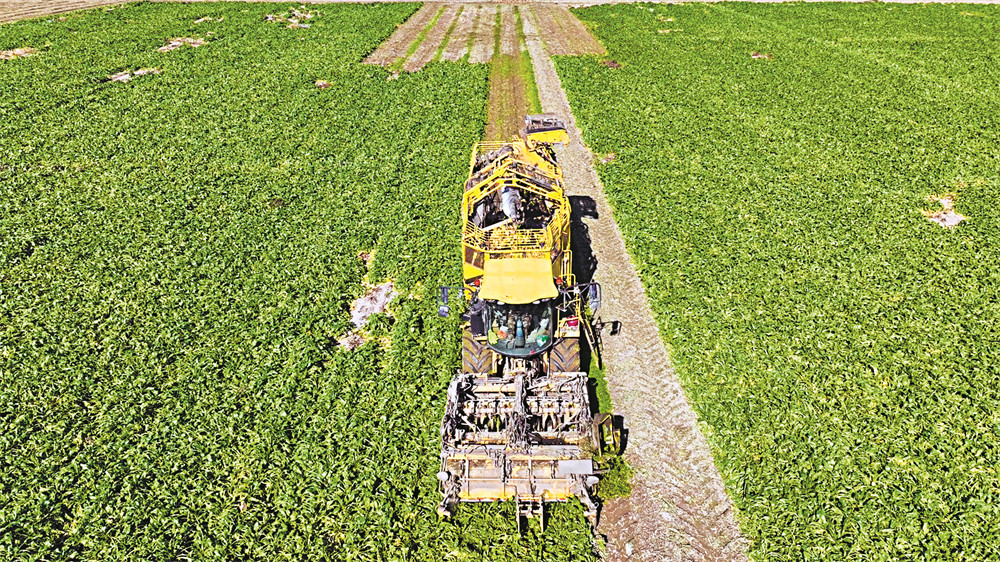农户驾驶农机采收甜菜。 (记者陈亿文 摄)
