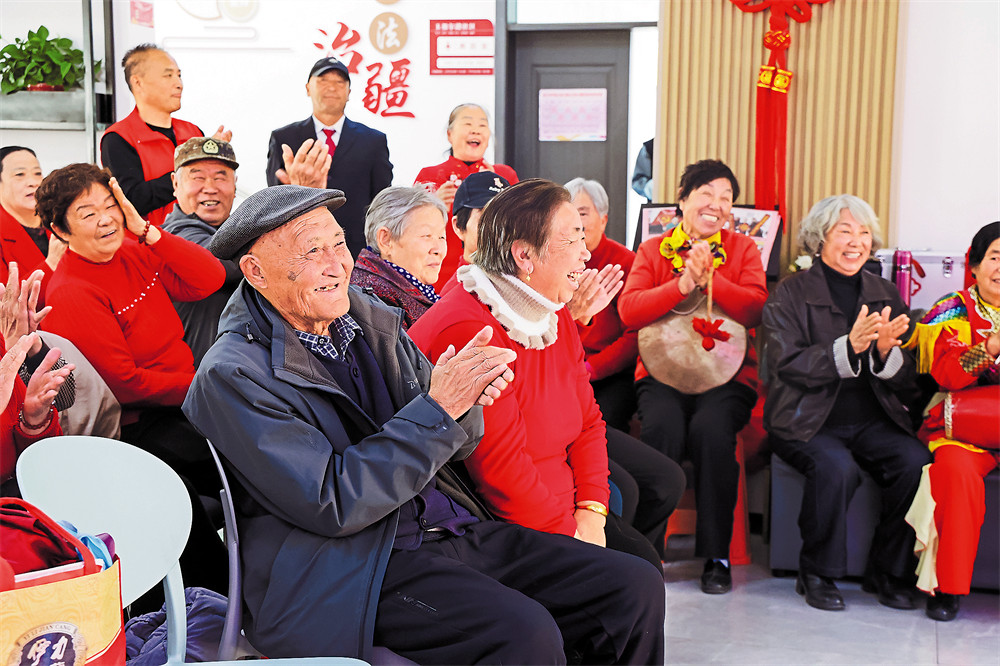 活动现场,居民既是观众,也是演员。爱心文艺队的李翠云和她的伙伴自编自演的节目,赢得了阵阵掌声。这样的形式不仅让演出更接地气,也让各族居民在互动中增进了邻里情谊。