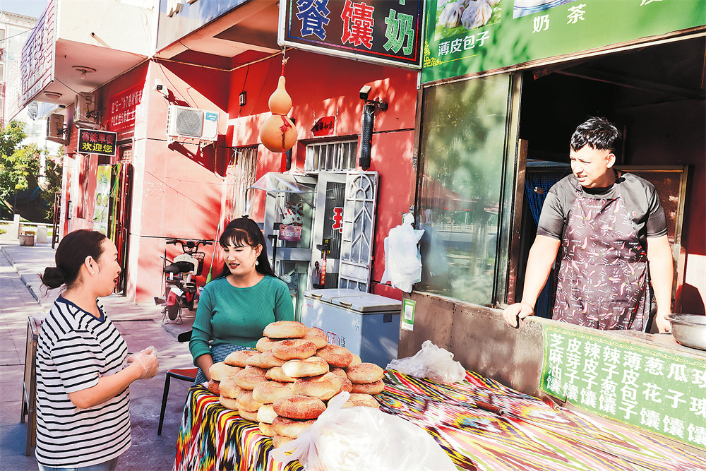 对于村里的经营户,吴文秀同样倾注了大量心血。阿卜都赛麦提·艾力最初以在村里打馕为生,吴文秀时常光顾他的小店,关心经营状况,过年时还会到家中做客共餐。后来生意渐好搬迁新址,只要工作允许,她总会抽空过来帮忙,用实际行动助力阿卜都赛麦提创业增收。