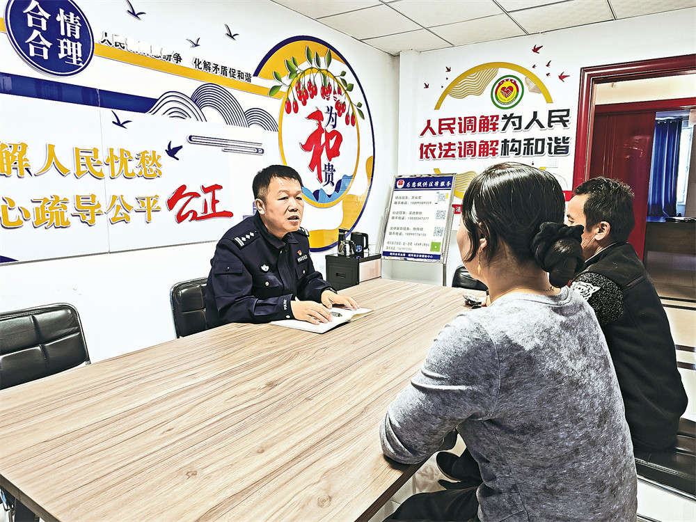 调解矛盾。 (记者阿曼·景克斯 摄)