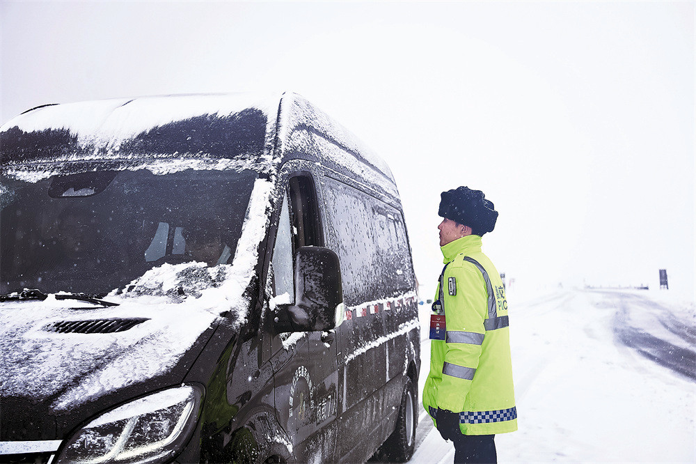 当日,赛里木湖景区出现降雪天气,景区公安分局一中队民警全力以赴投入疏堵保畅工作,切实做好降雪天气道路交通安全工作。