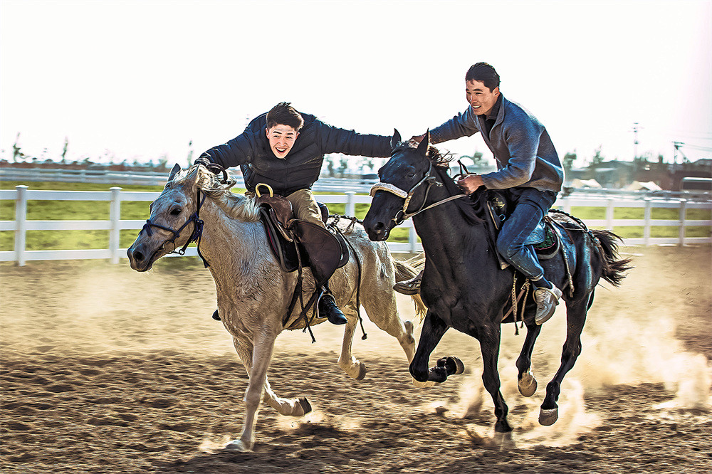 博乐市乌图布拉格镇介格得布拉格村马队队员表演赛马