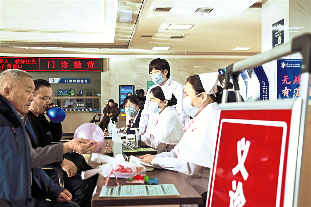 当日是第24个世界慢阻肺日,主题为“呼吸不顺畅,当心慢阻肺”。该医院免费为居民检测肺功能,提高居民对慢阻肺的认识,倡导“早诊断、早治疗”。 (记者赛永杰 摄)