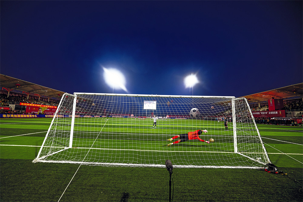 11月23日,2025年新疆“阿图什杯”足球邀请赛四分之一决赛精彩瞬间。