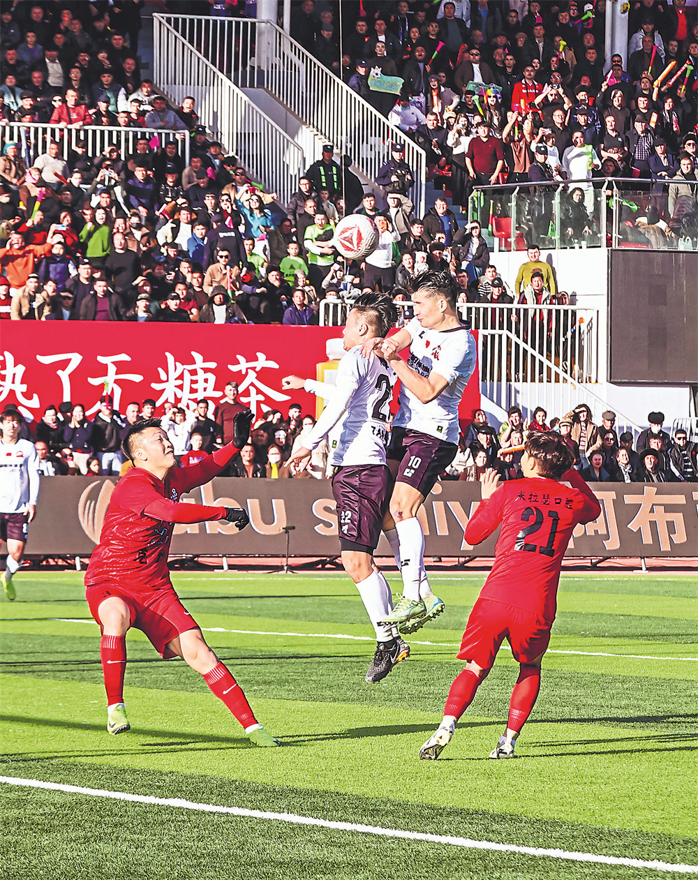 常规时间双方战成1:1,比赛进入加时赛。疲惫并未阻挡两队球员的进攻脚步,克州队在第102分再度打破僵局,比分变为2:1。绝境之下,博州队球迷的助威声愈发响亮,“博州加油”的口号响彻体育场,队员们也迸发出更强的斗志。加时赛下半场刚进行2分钟,边路队员精准传递,博州队19号球员王斯一记漂亮头球攻门,足球应声入网。加时赛结束,双方比分定格为2:2,随后进行点球大战。